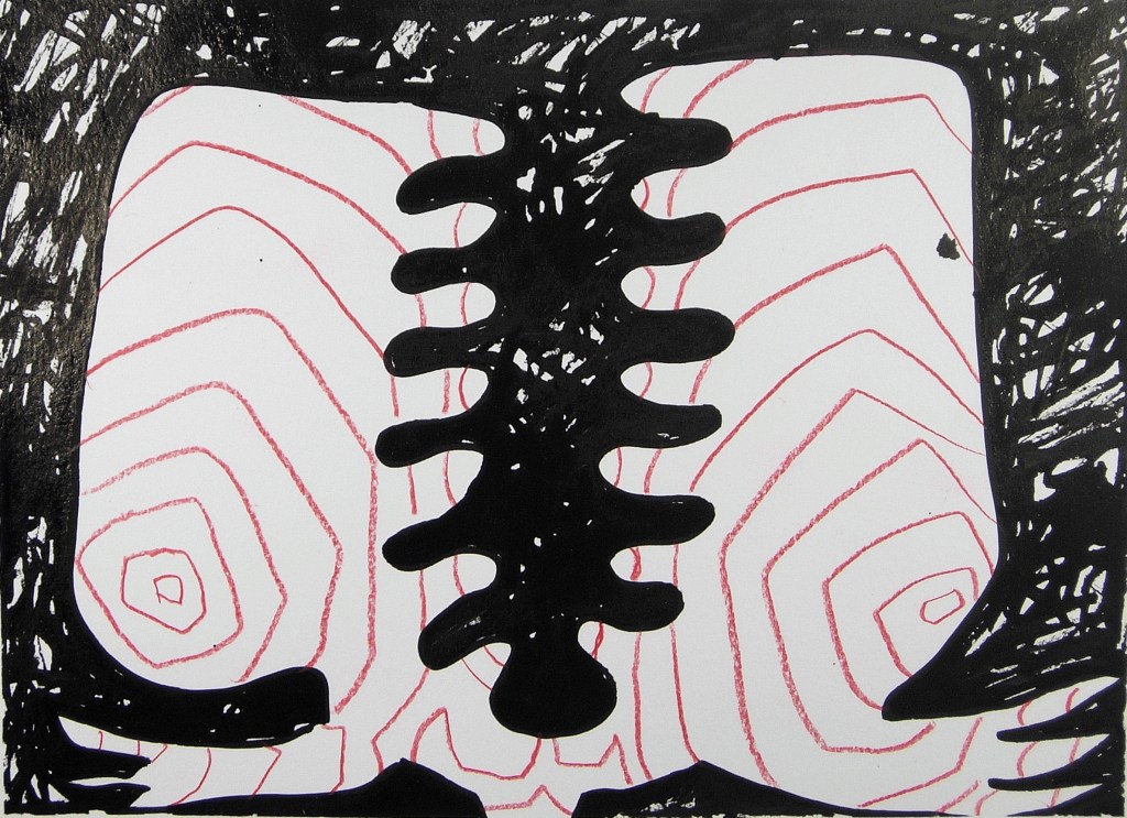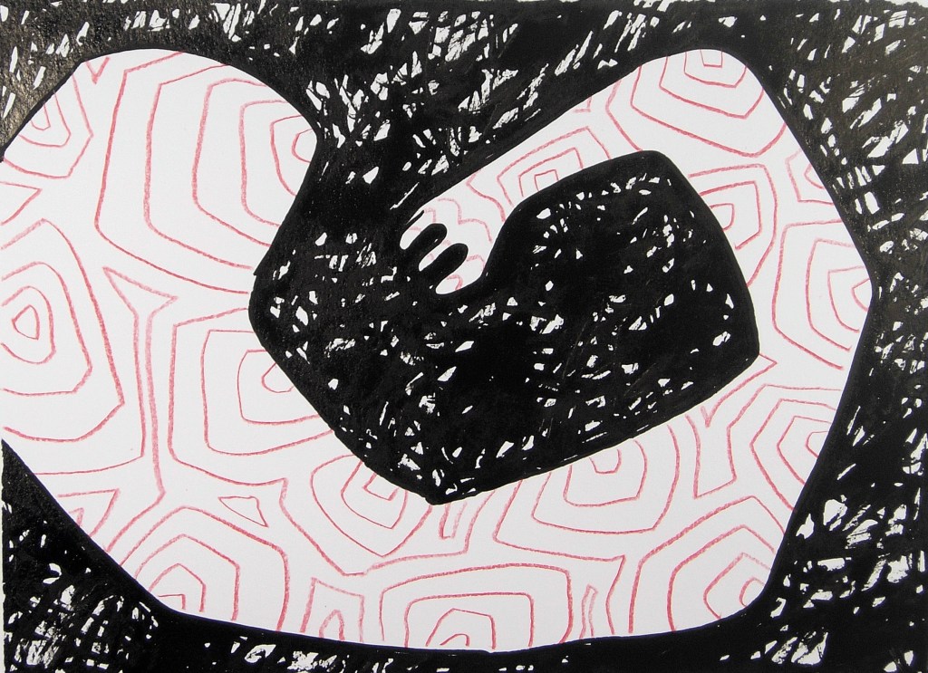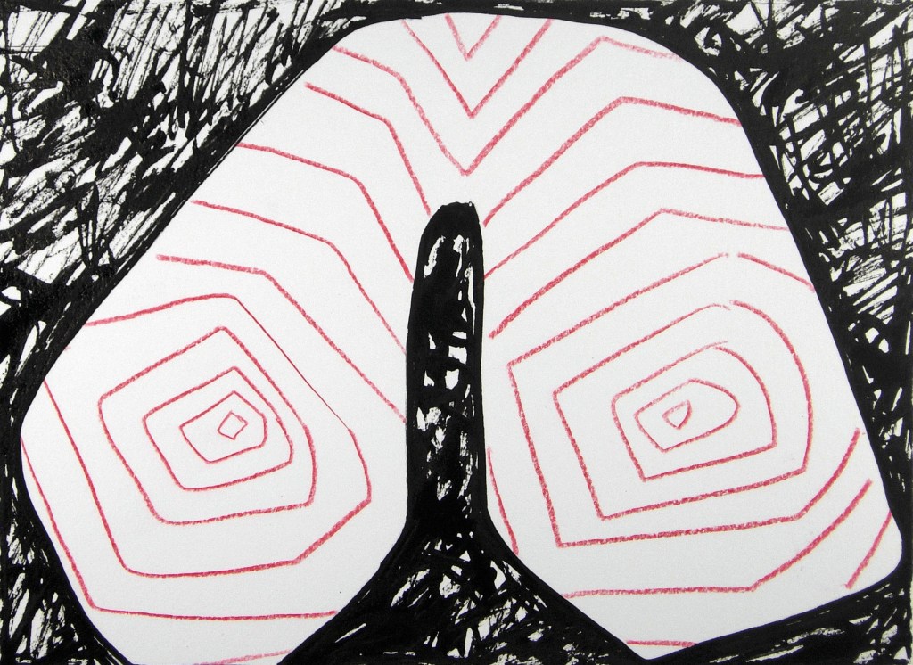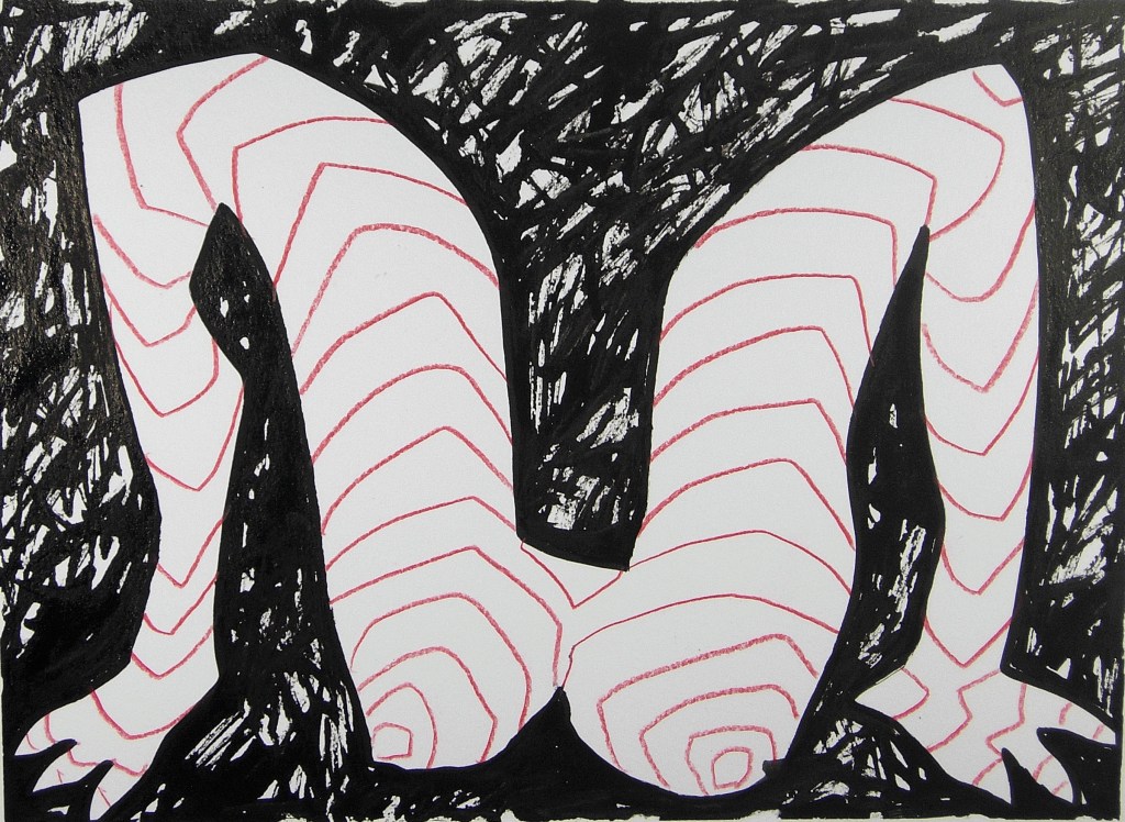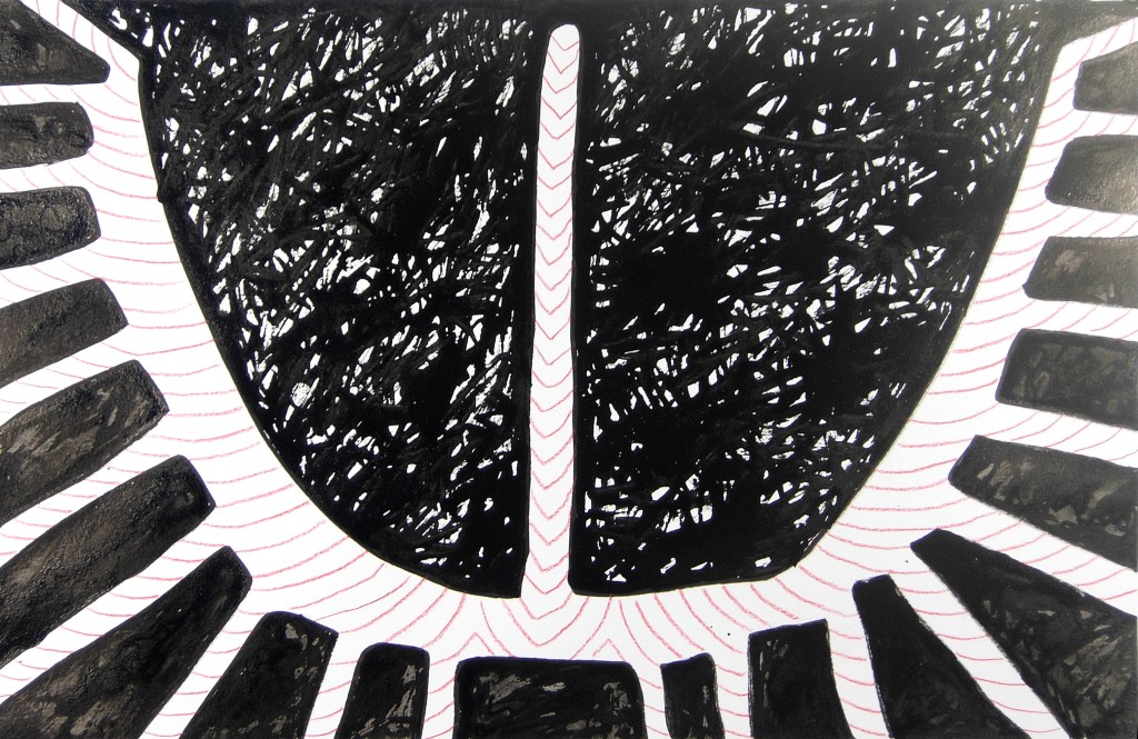 Eve Picher, Mythix17, acrylic marker, pencil, Chinese ink, 9×12 inches, 2026