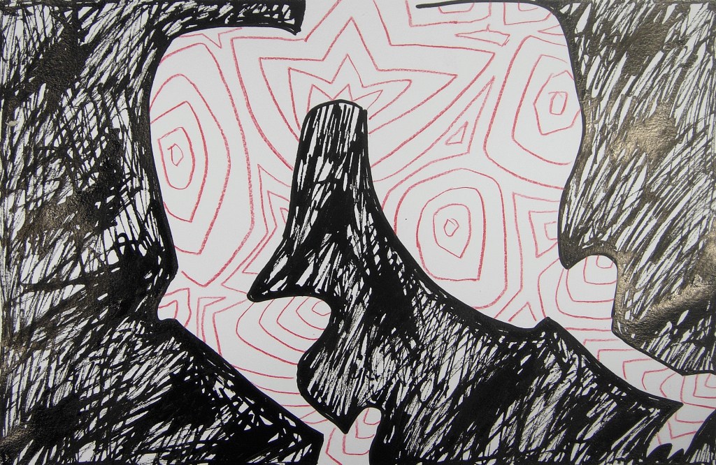 Eve Picher, Mythix42, acrylic marker, pencil, Chinese ink, 9×12 inches, 2026