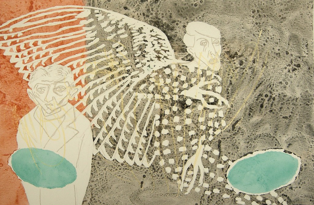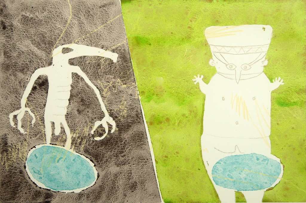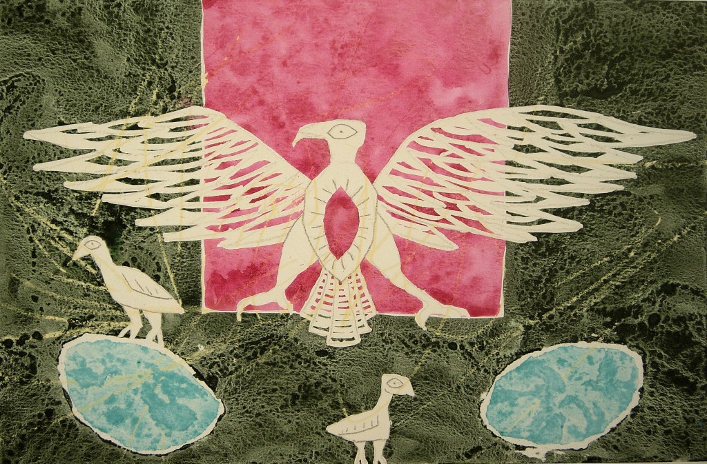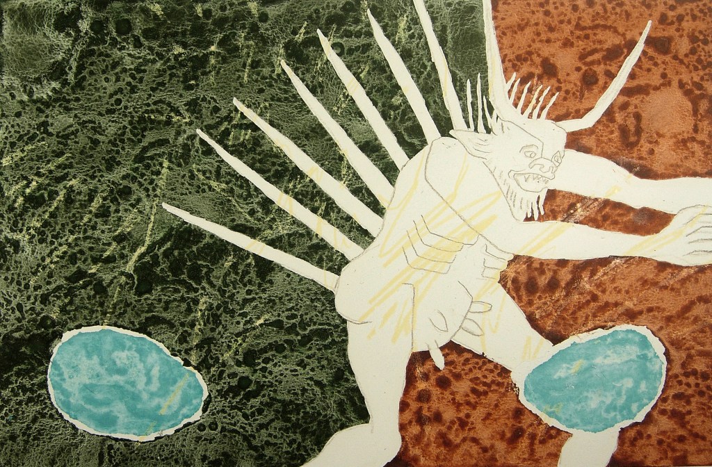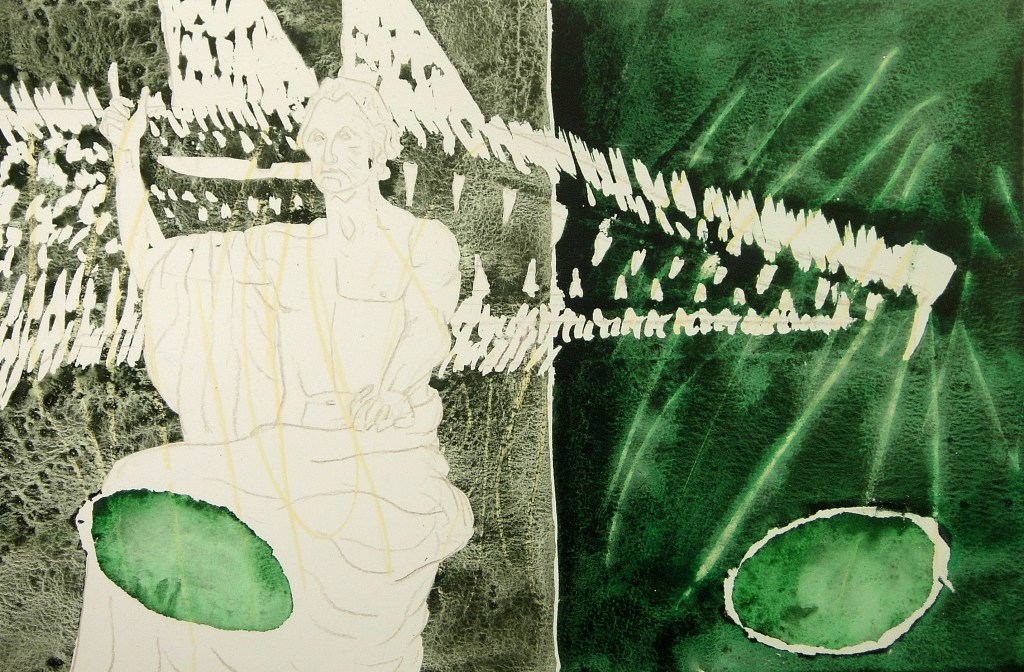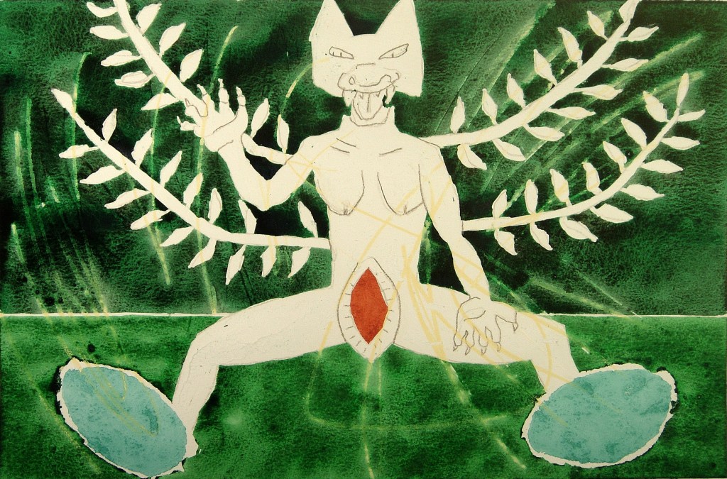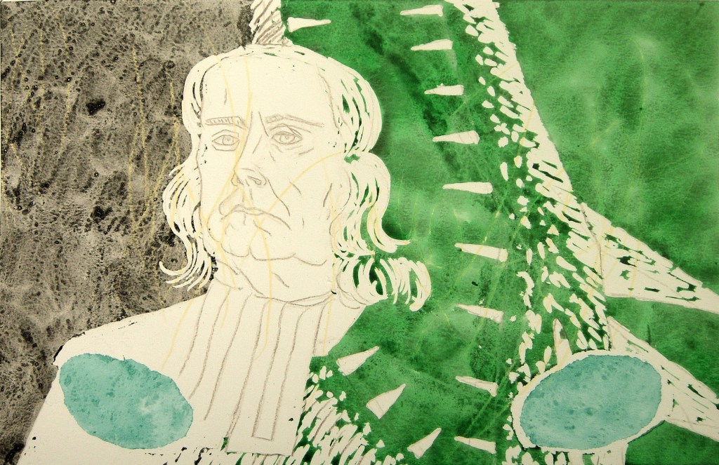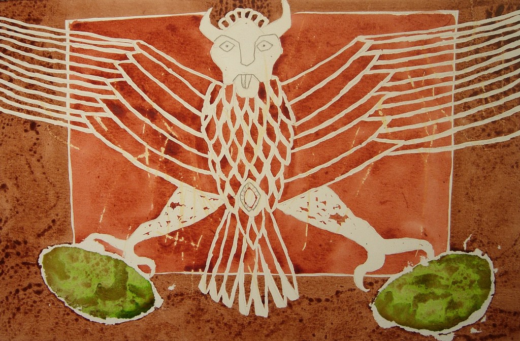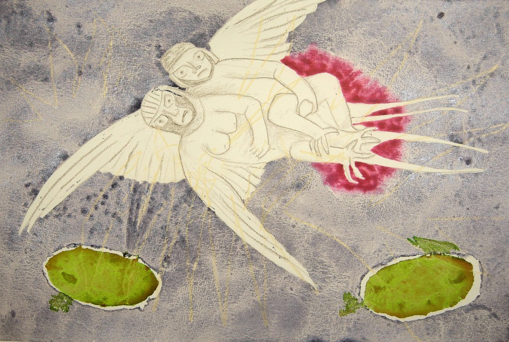 Eve Pix, O-Verts120, pipestone, Russian emerald, and pencil on paper, 12×18 inches, 2025