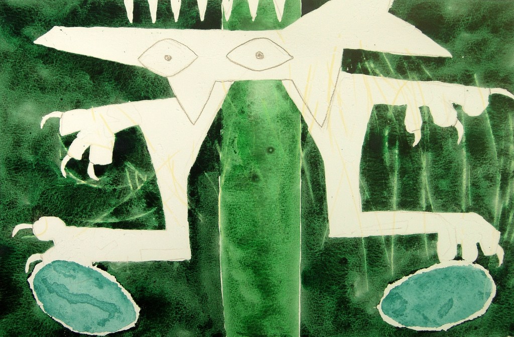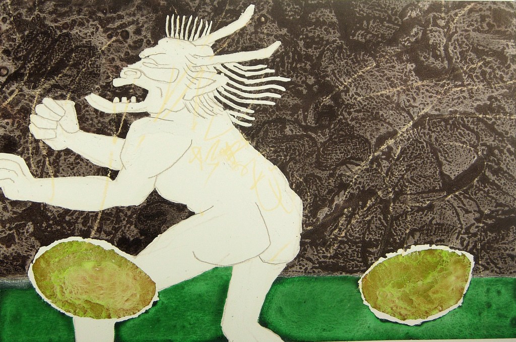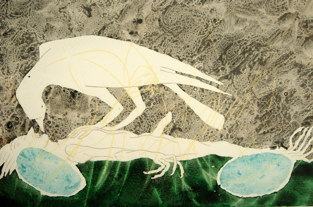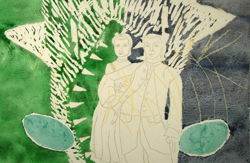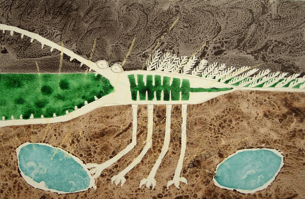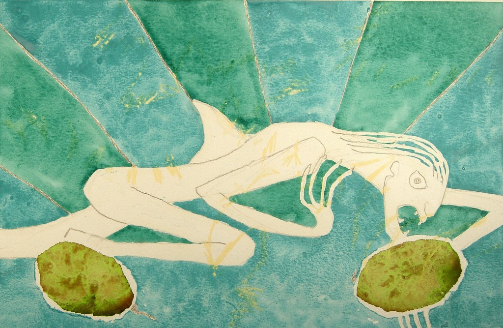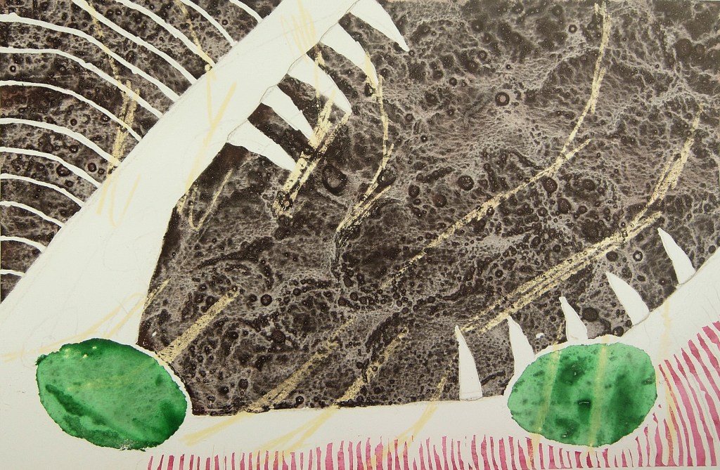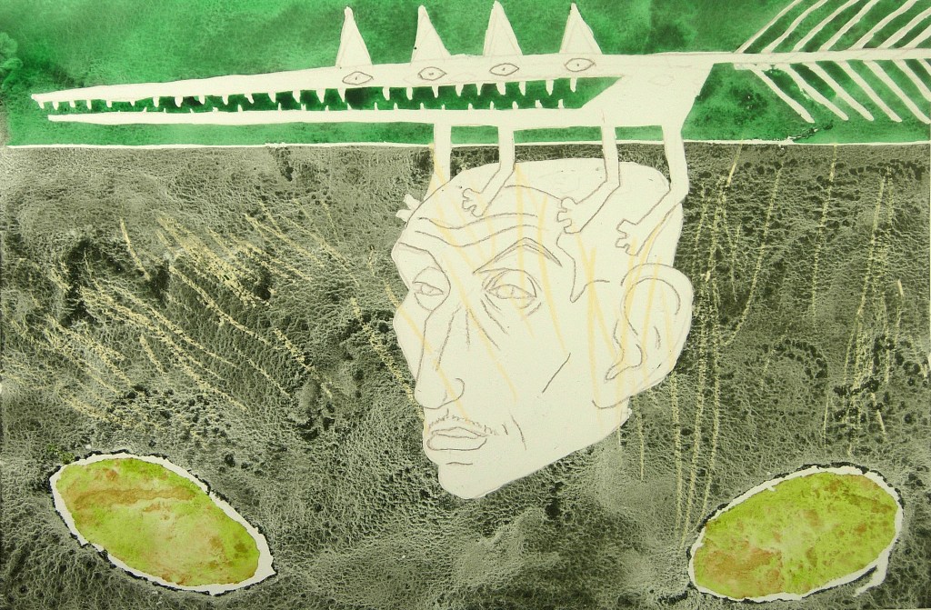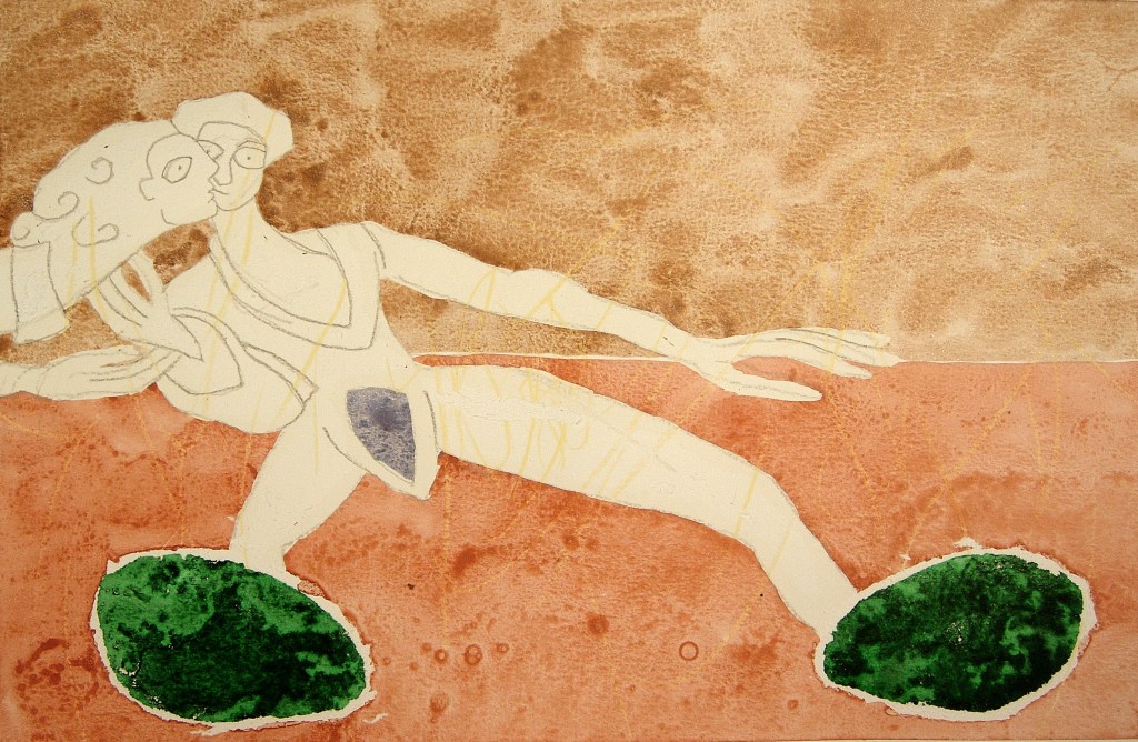 Eve Pix, O-Verts120, pipestone, Russian emerald, and pencil on paper, 12×18 inches, 2025