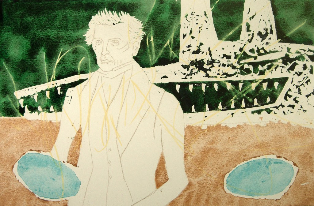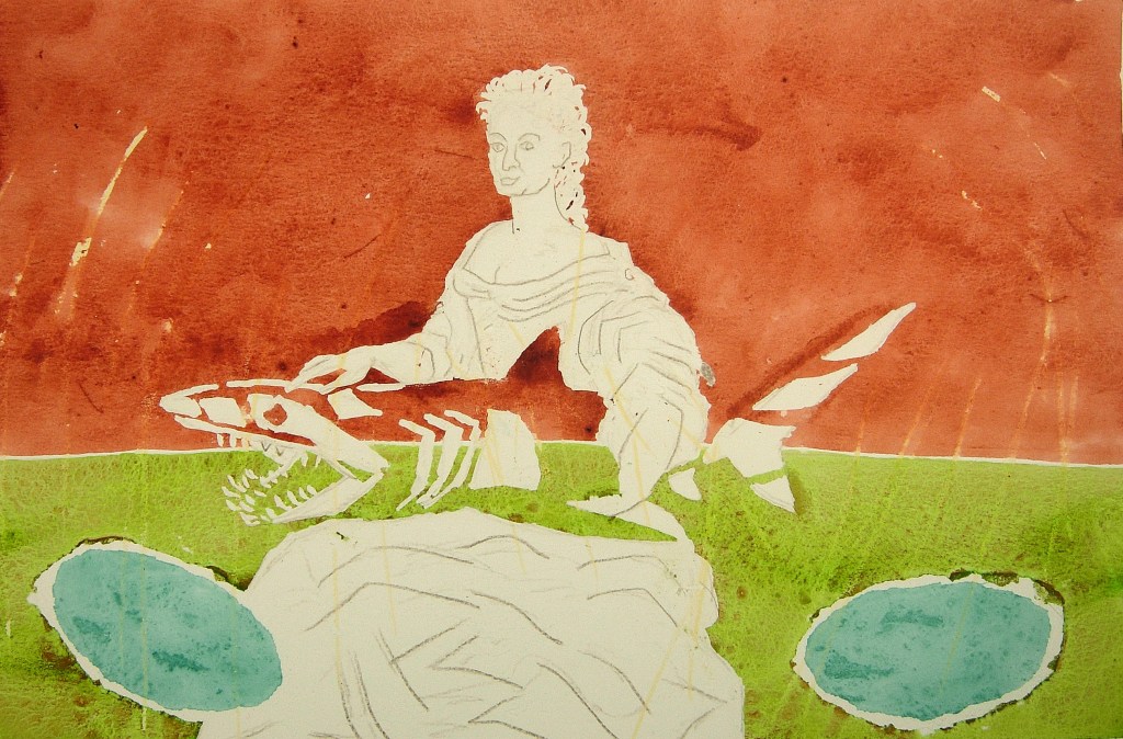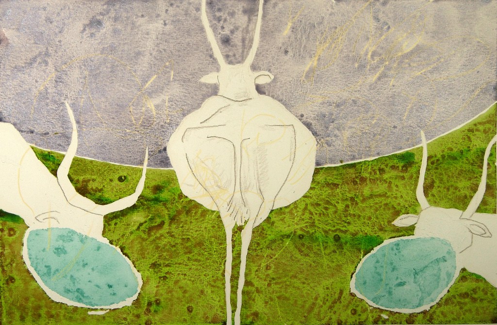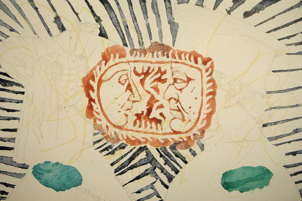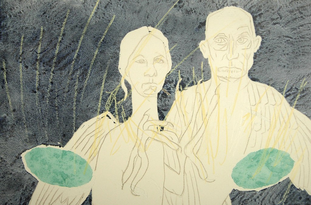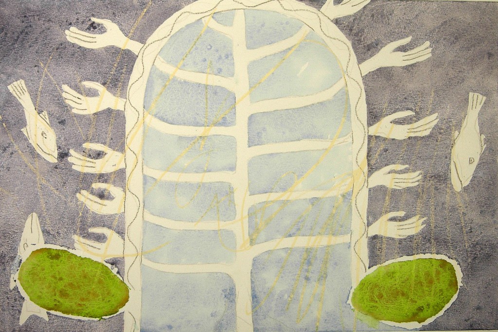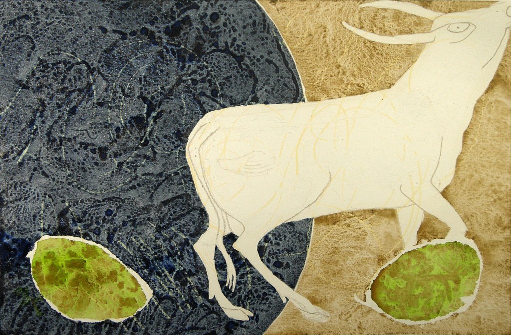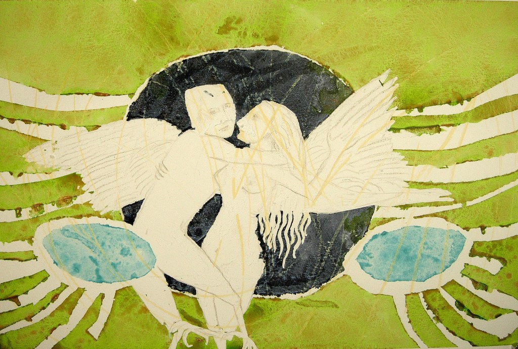 Eve Pix, O-Verts120, pipestone, Russian emerald, and pencil on paper, 12×18 inches, 2025