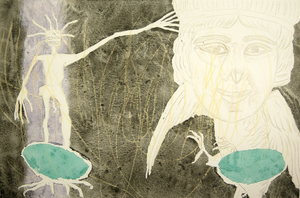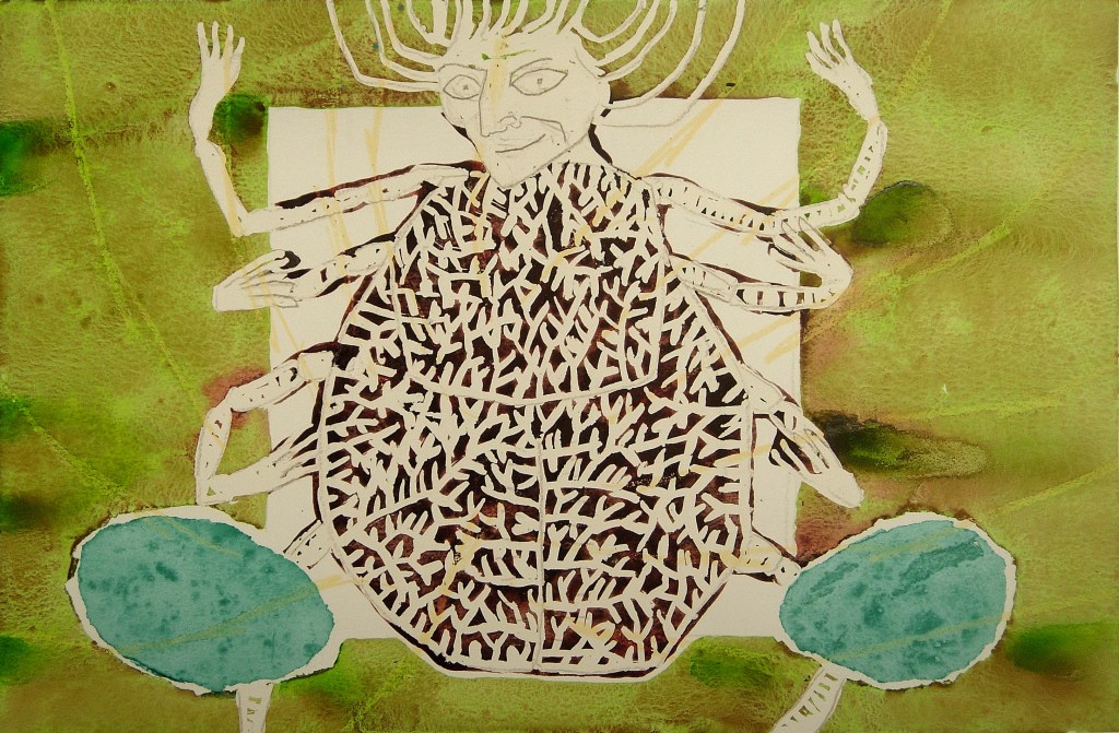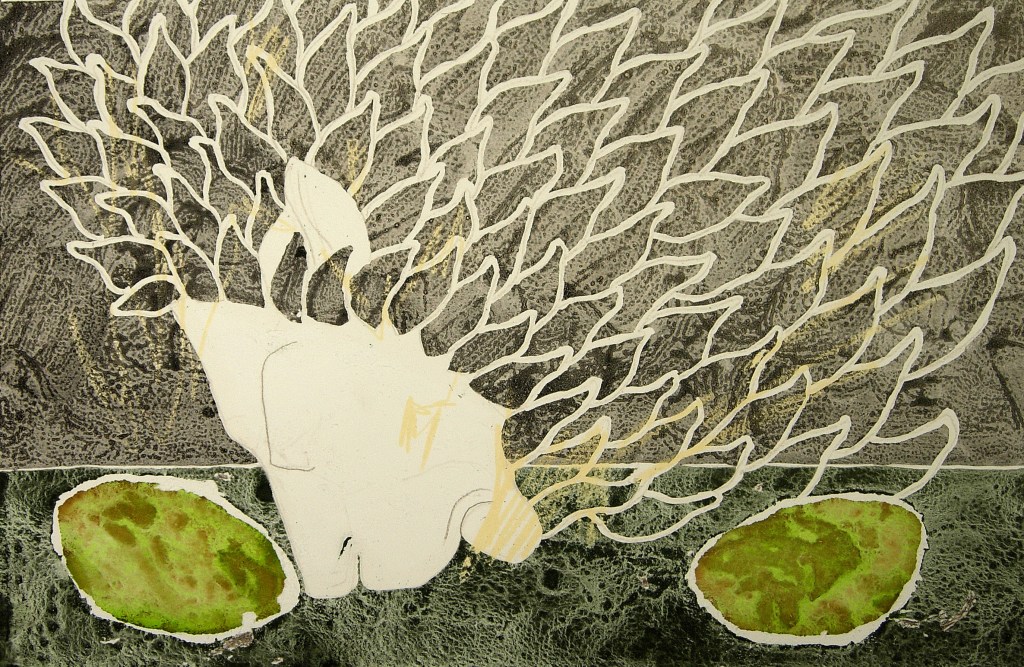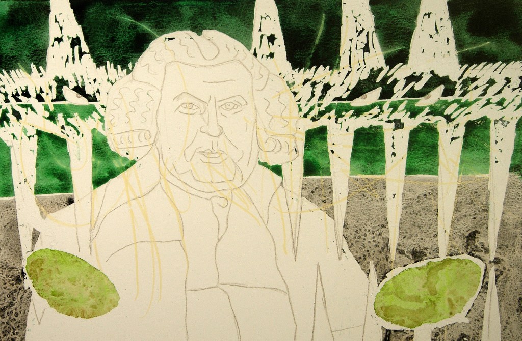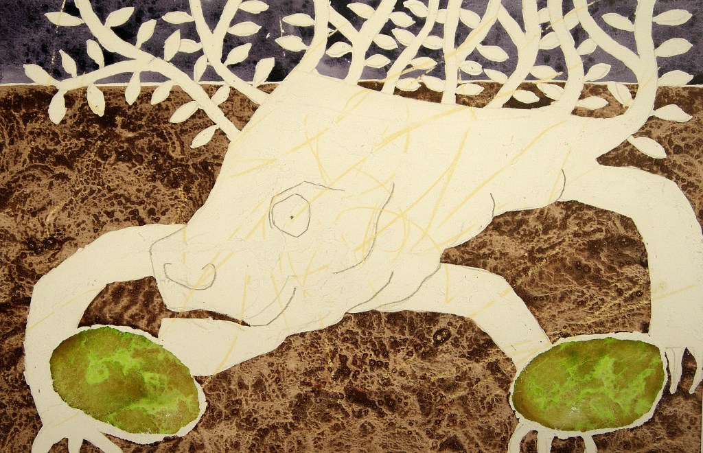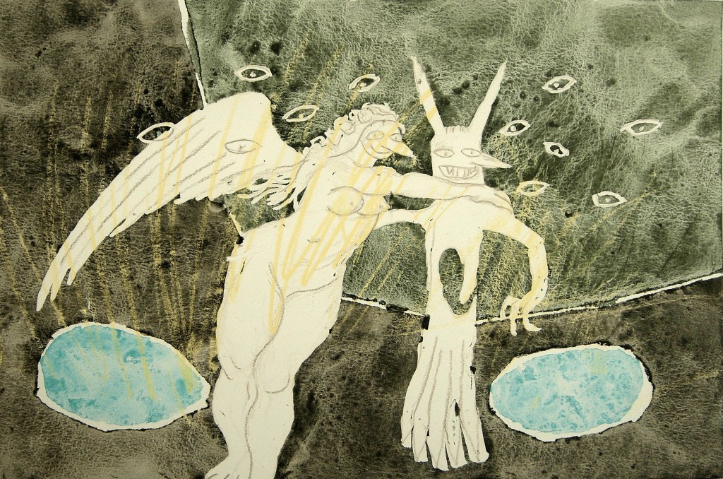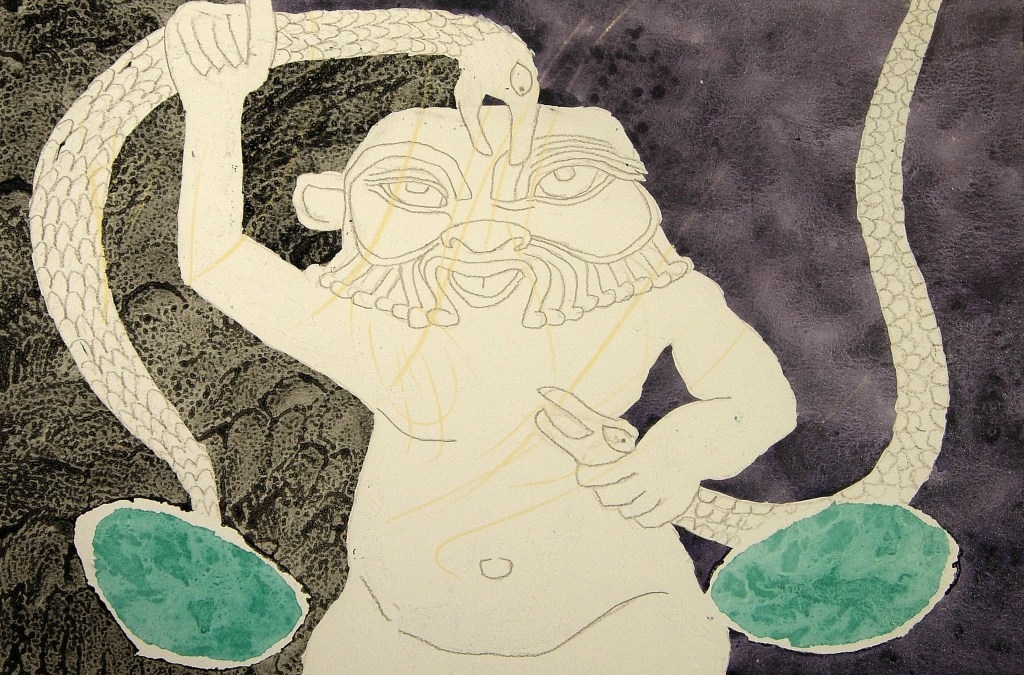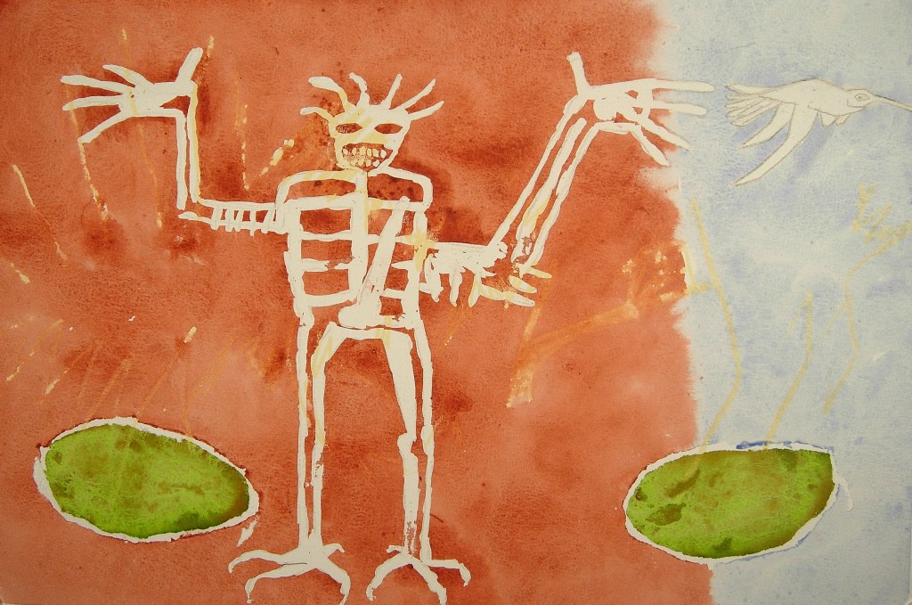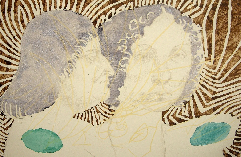 Eve Pix, O-Verts120, pipestone, Russian emerald, and pencil on paper, 12×18 inches, 2025