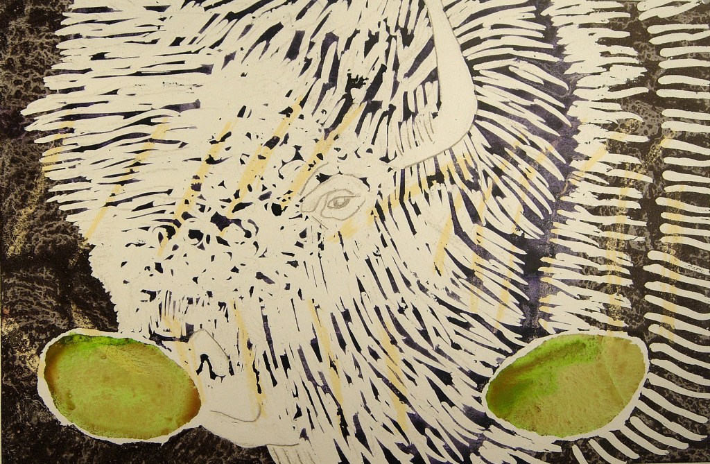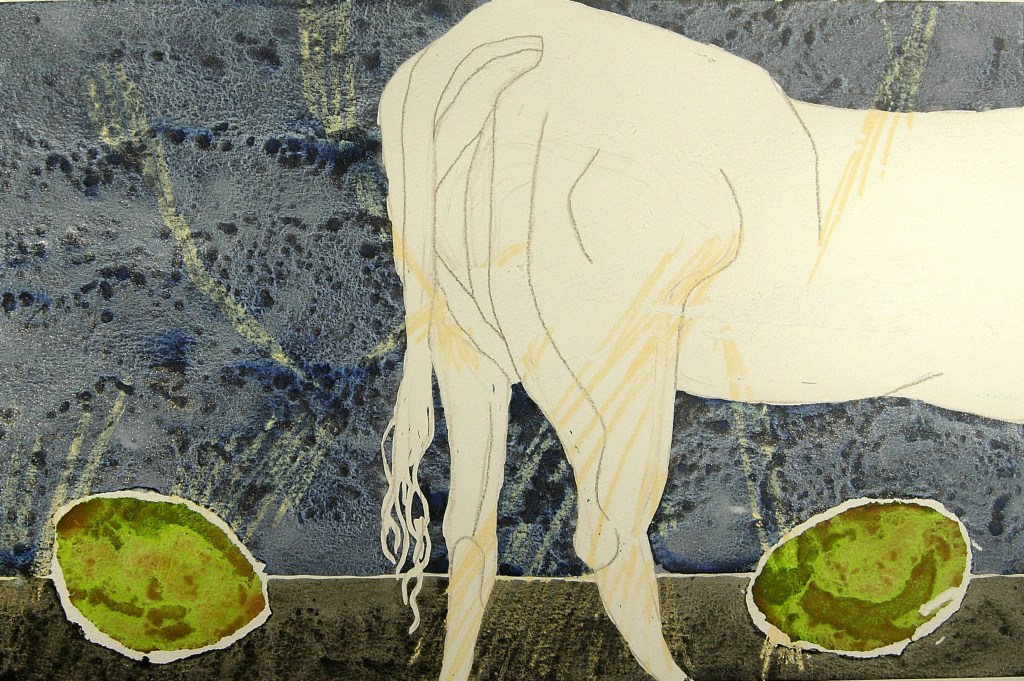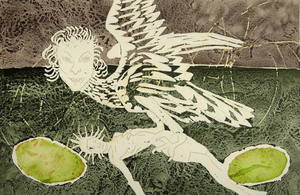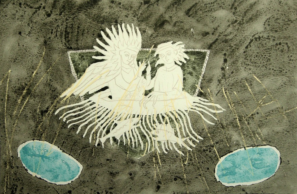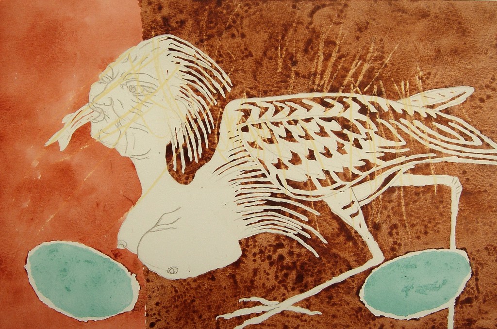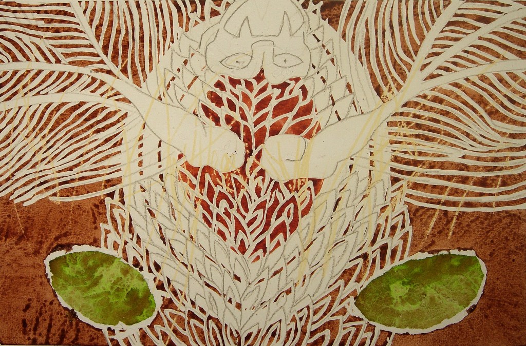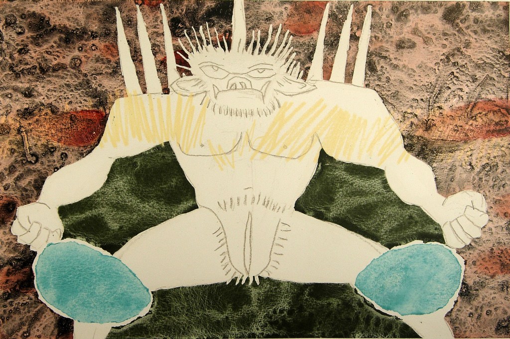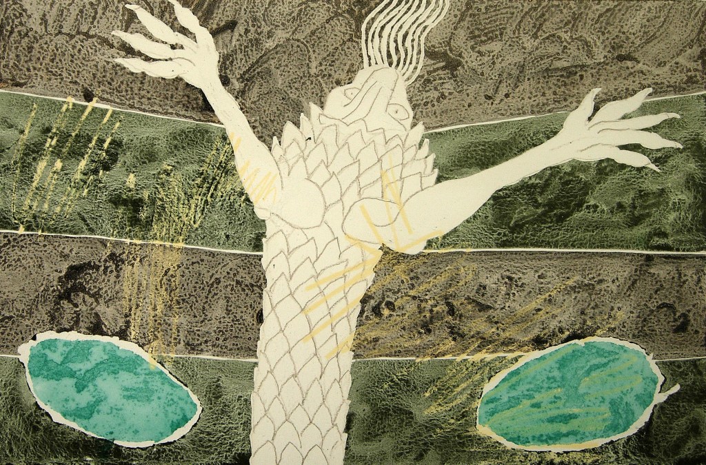 Eve Pix, O-Verts120, pipestone, Russian emerald, and pencil on paper, 12×18 inches, 2025