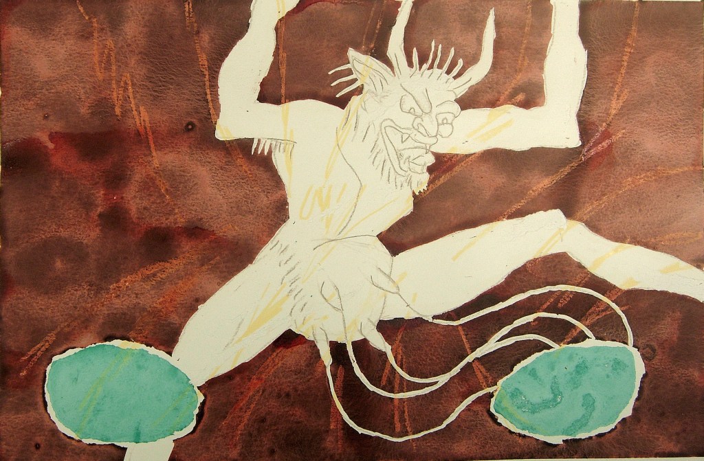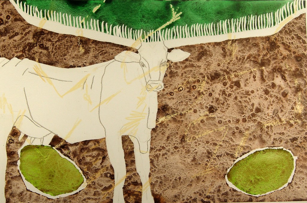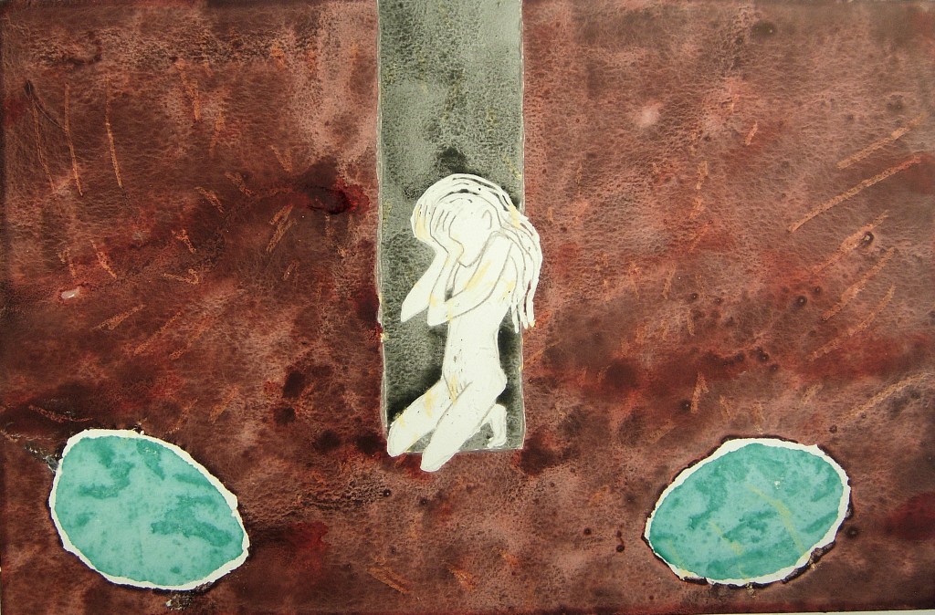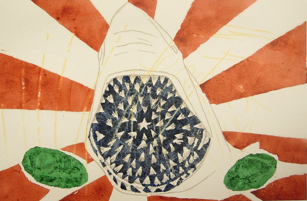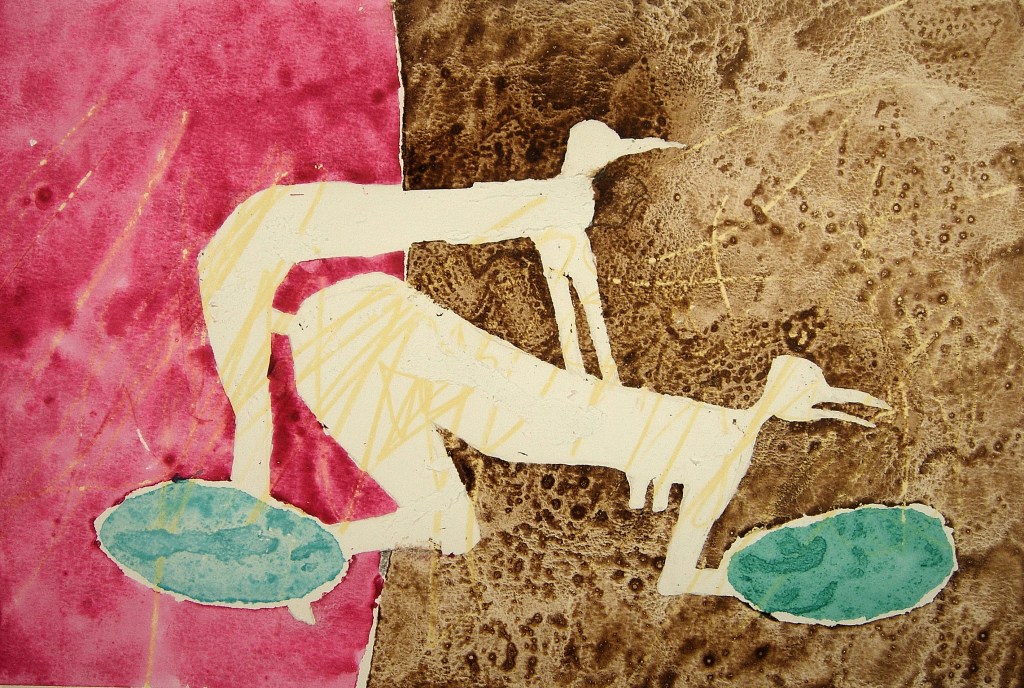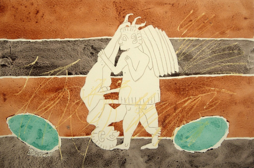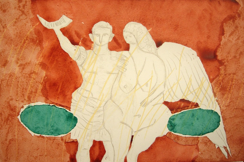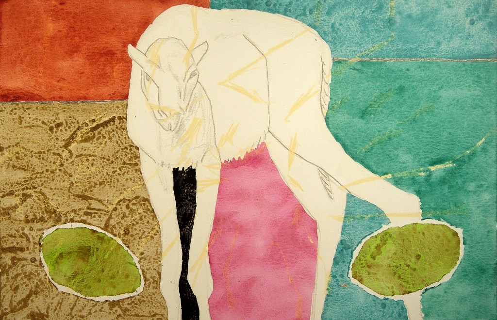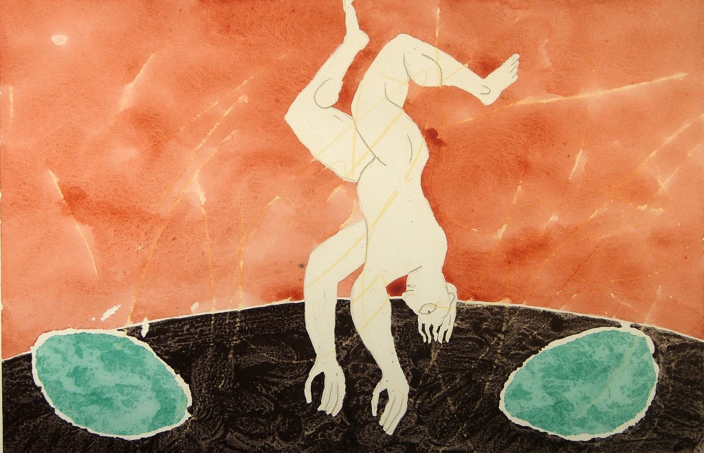 Eve Pix, O-Verts145, rhodonite, pipestone, turquoise, and pencil on paper, 12×18 inches, 2025