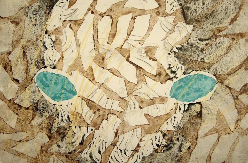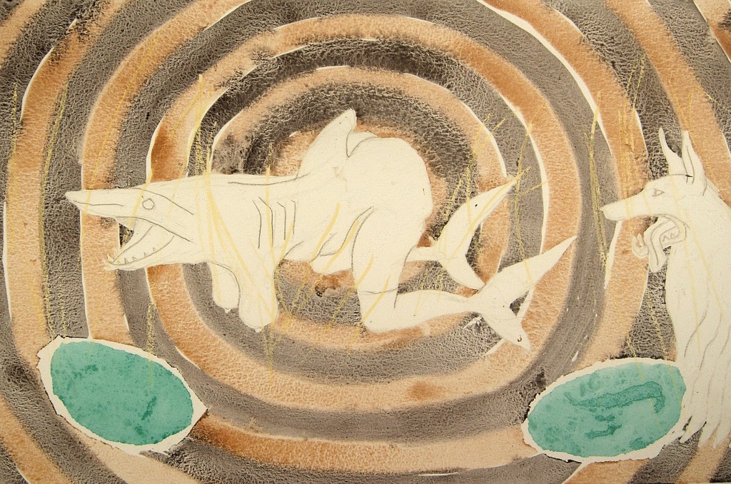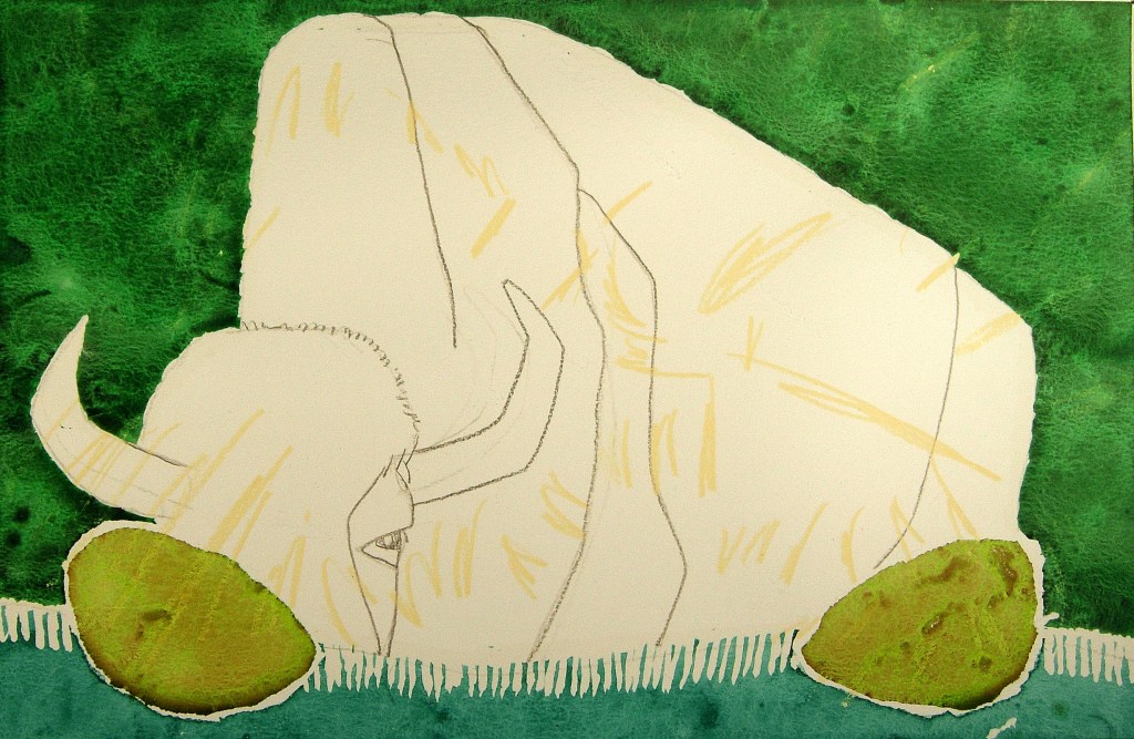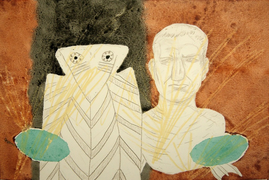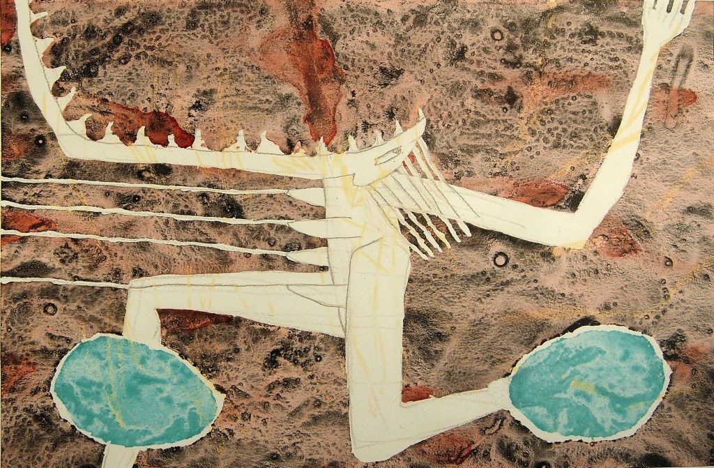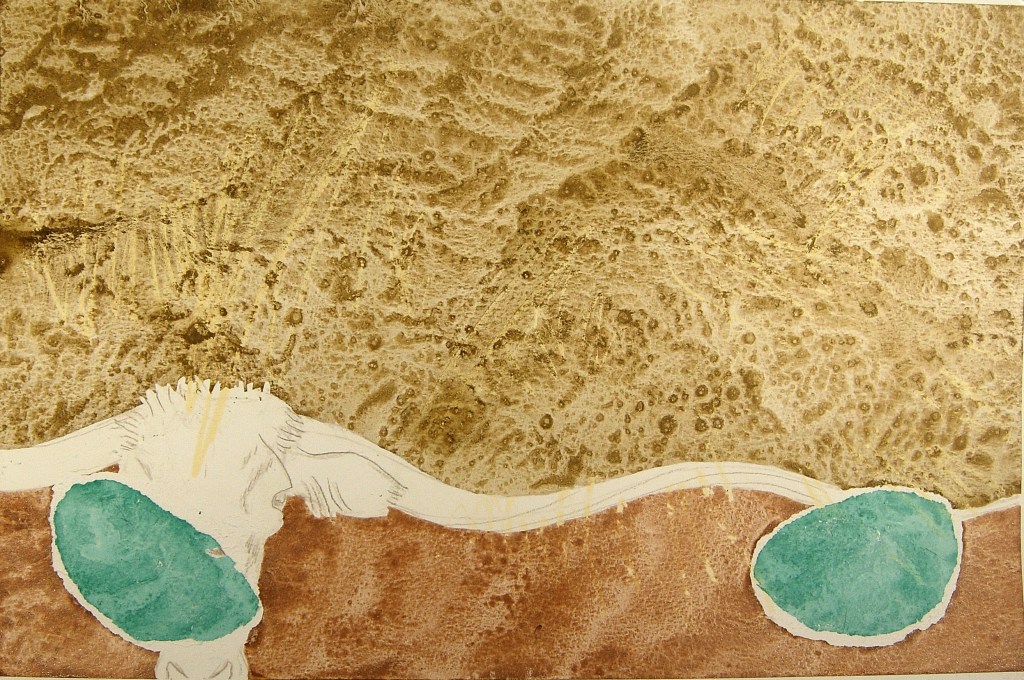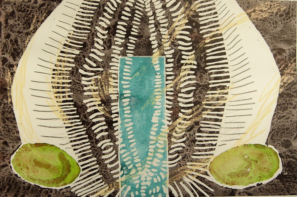 Eve Pix, O-Verts46, pipestone, rhodonite, turquoise, and pencil on paper, 12×18 inches, 2025