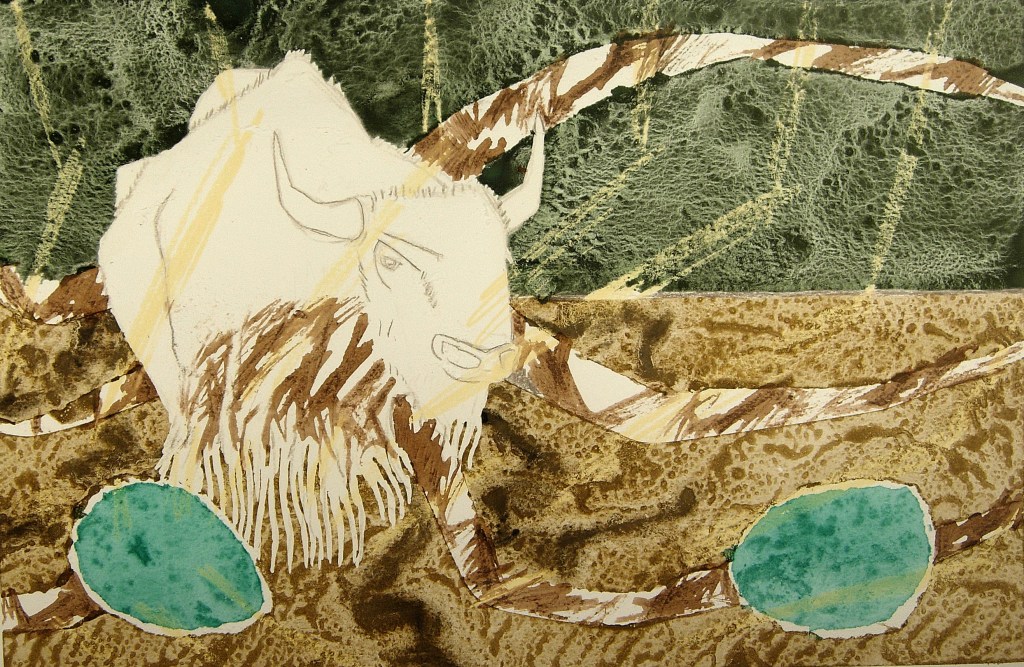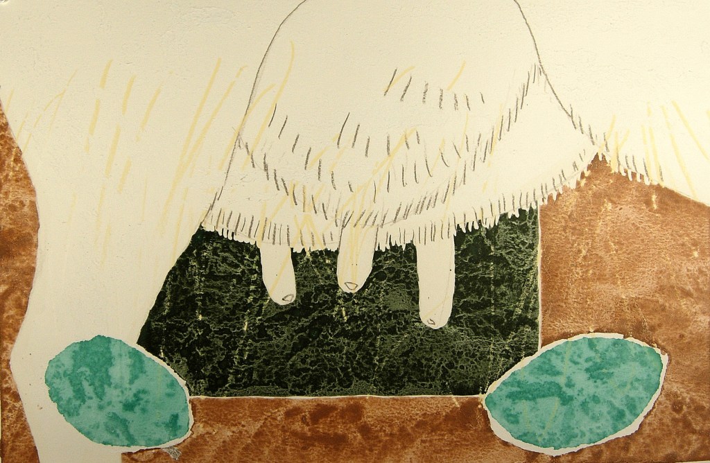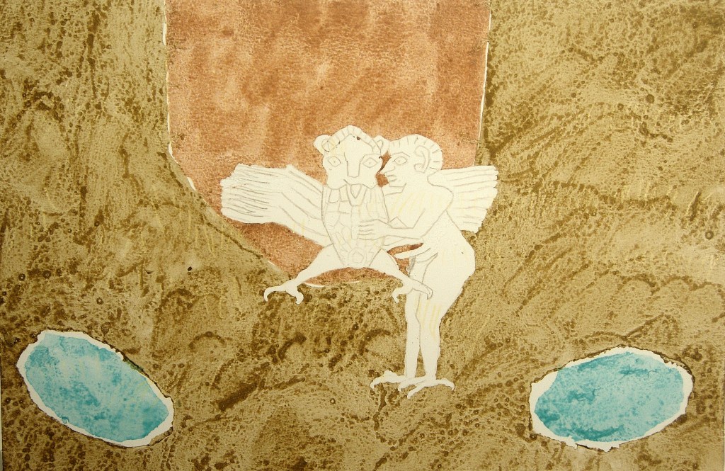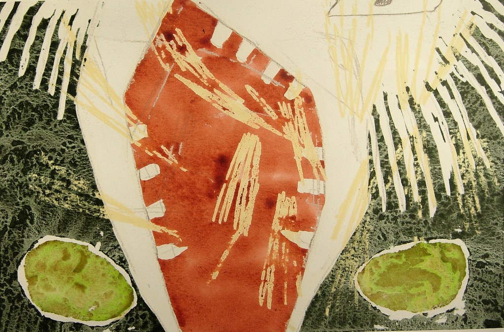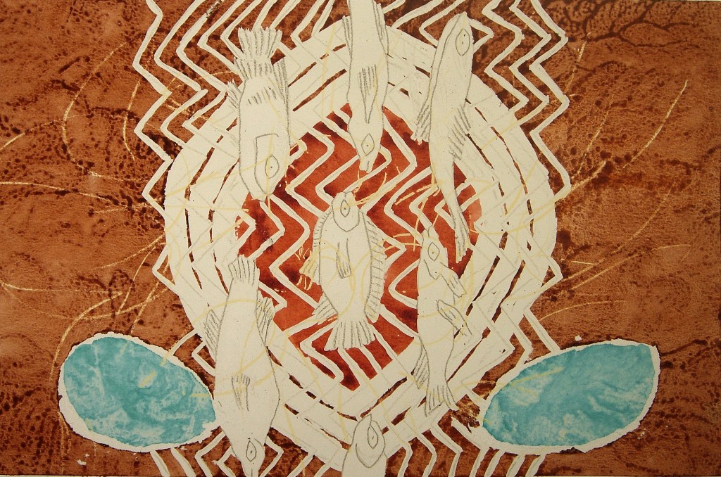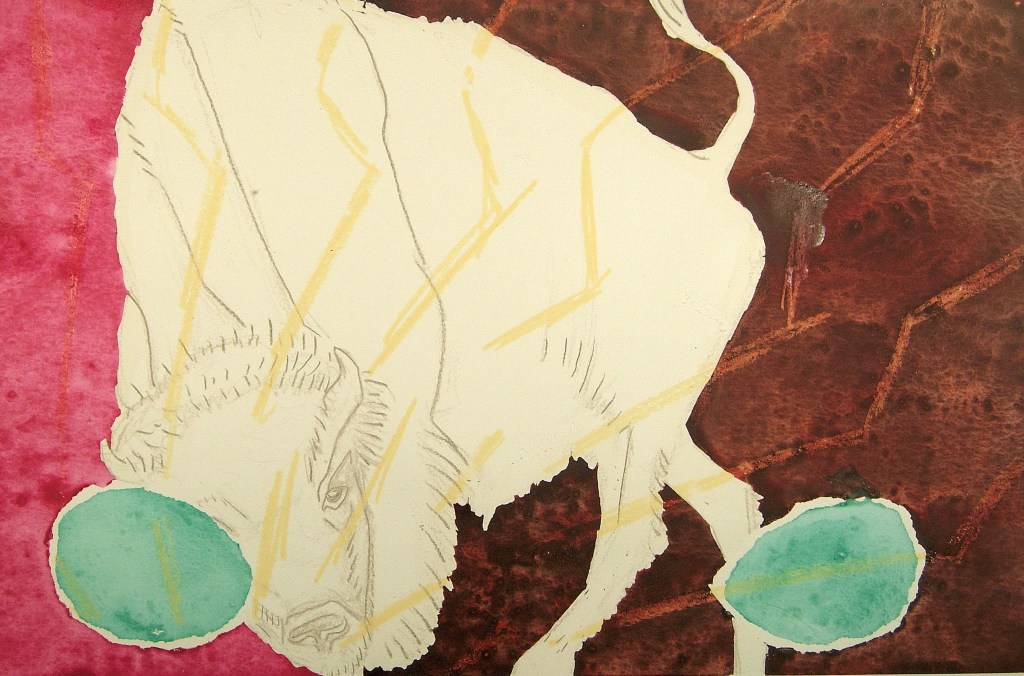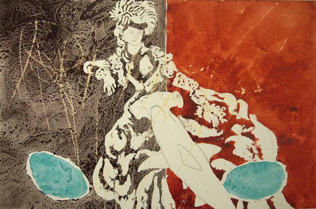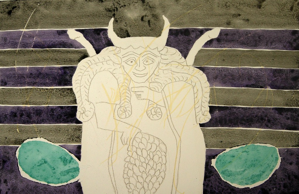 Eve Pix, O-Verts46, pipestone, rhodonite, turquoise, and pencil on paper, 12×18 inches, 2025