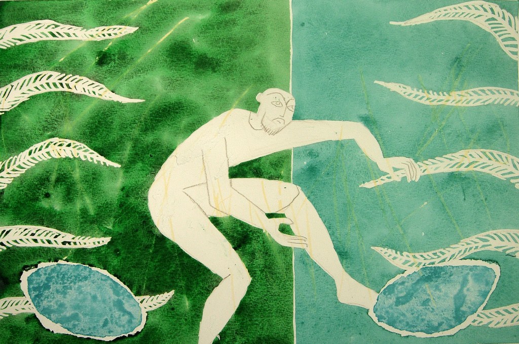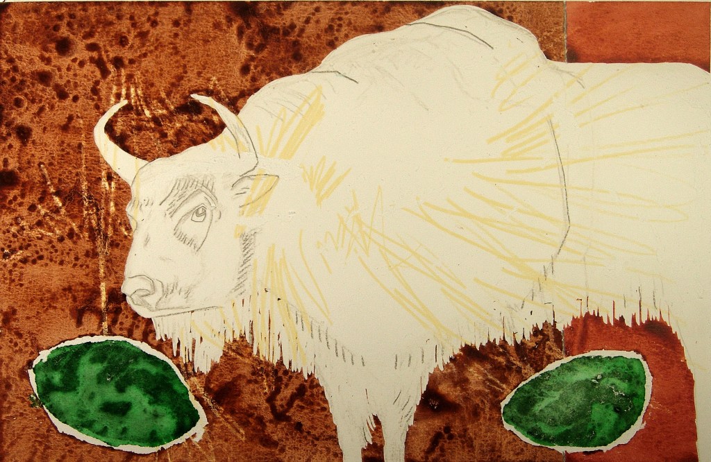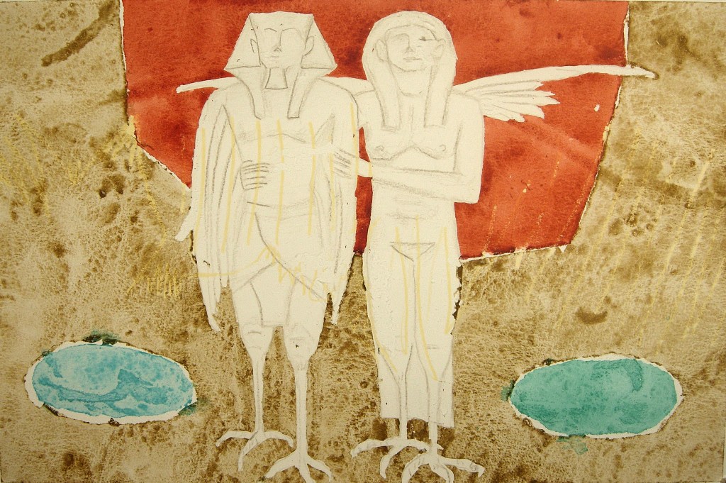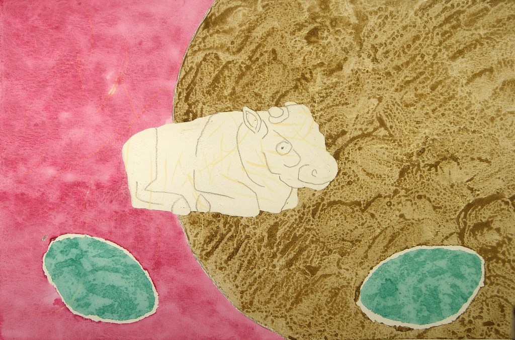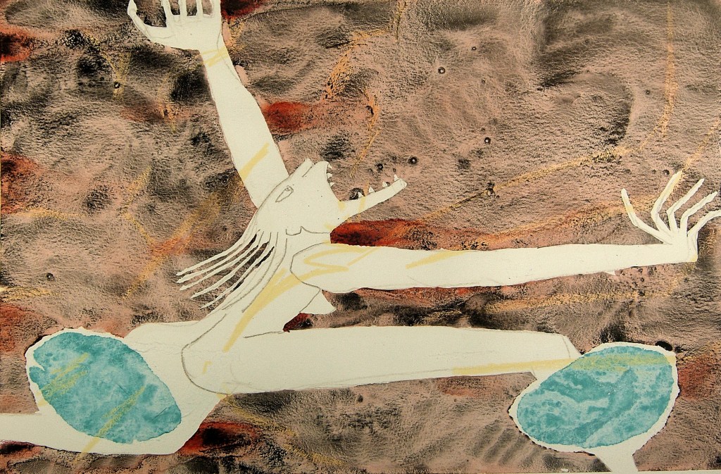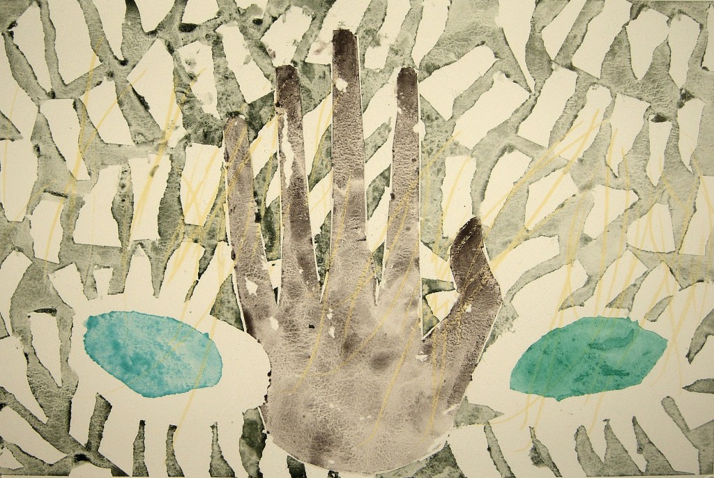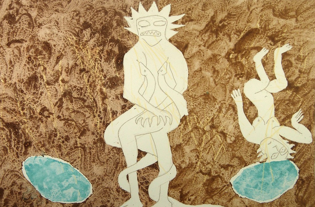 Eve Pix, O-Verts46, pipestone, rhodonite, turquoise, and pencil on paper, 12×18 inches, 2025