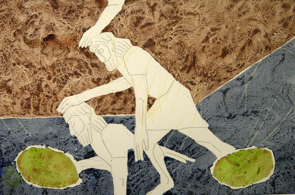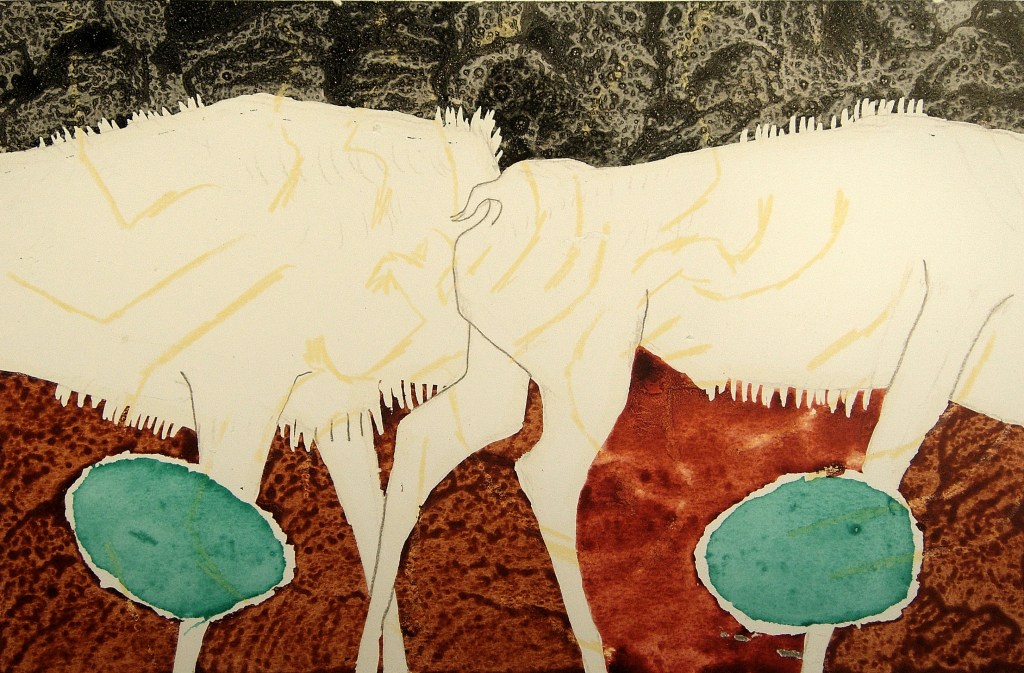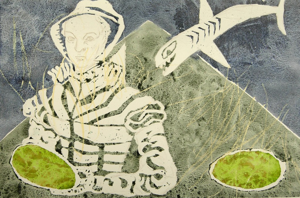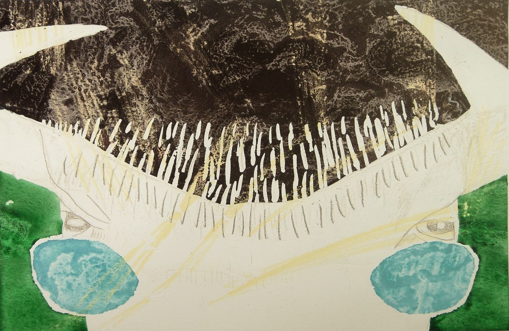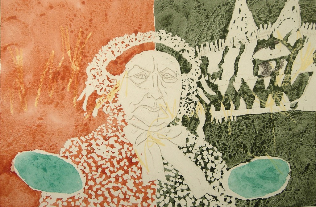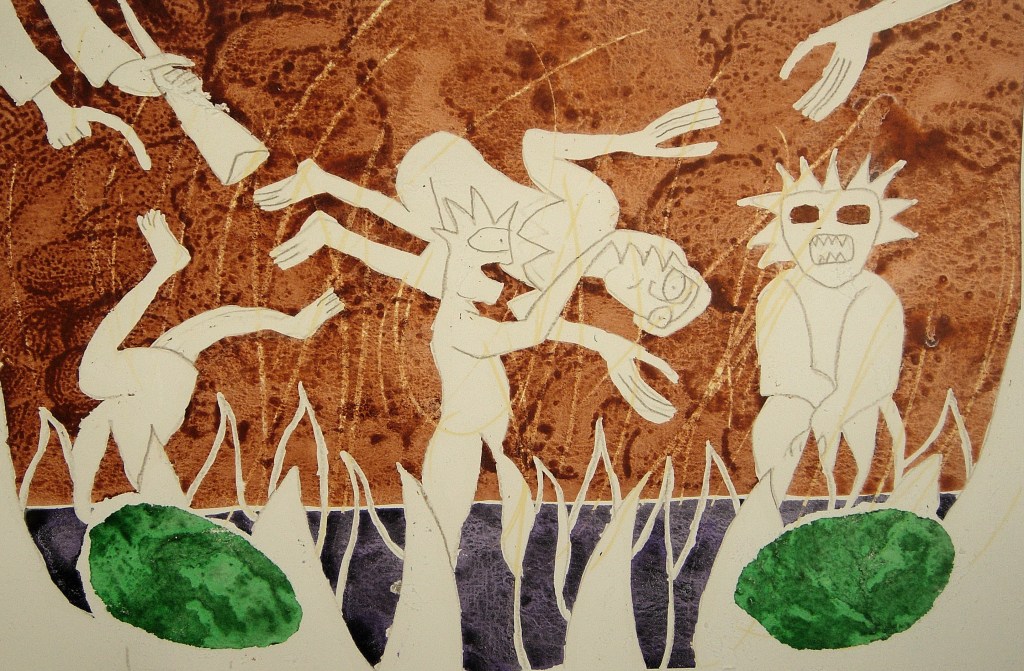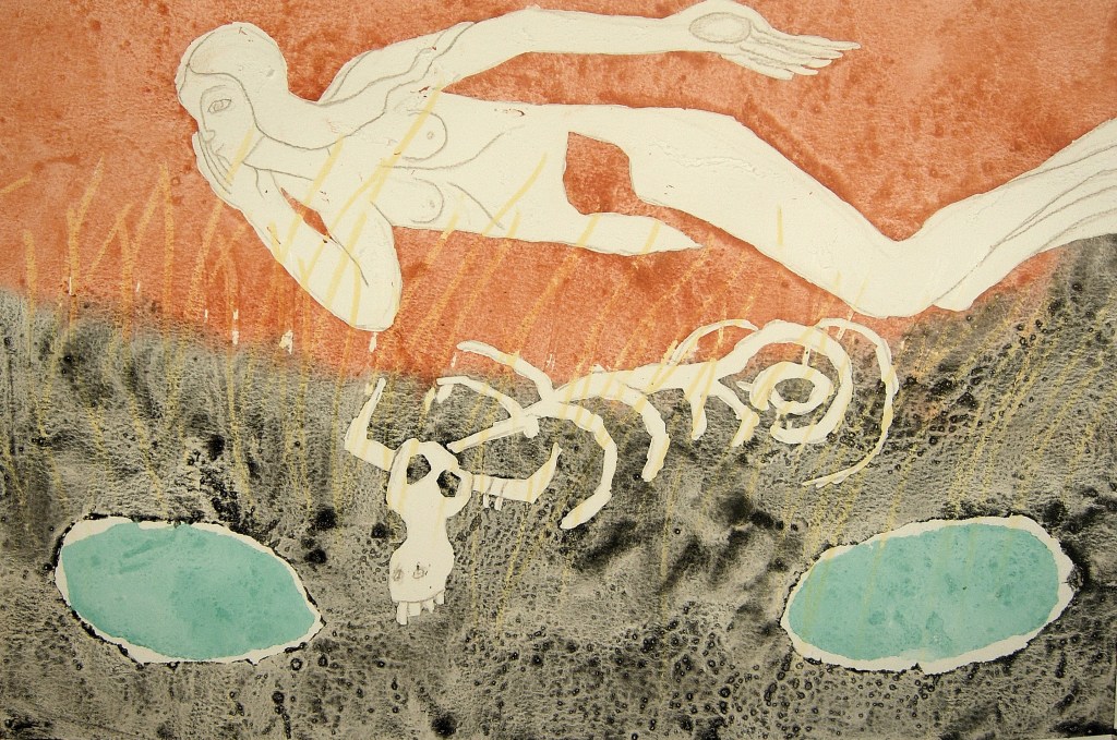 Eve Pix, O-Verts46, pipestone, rhodonite, turquoise, and pencil on paper, 12×18 inches, 2025