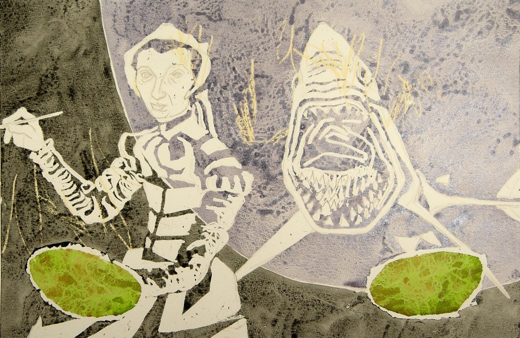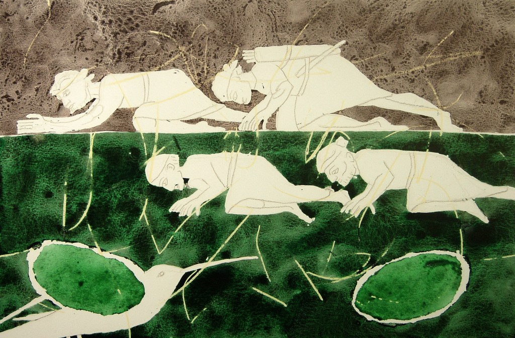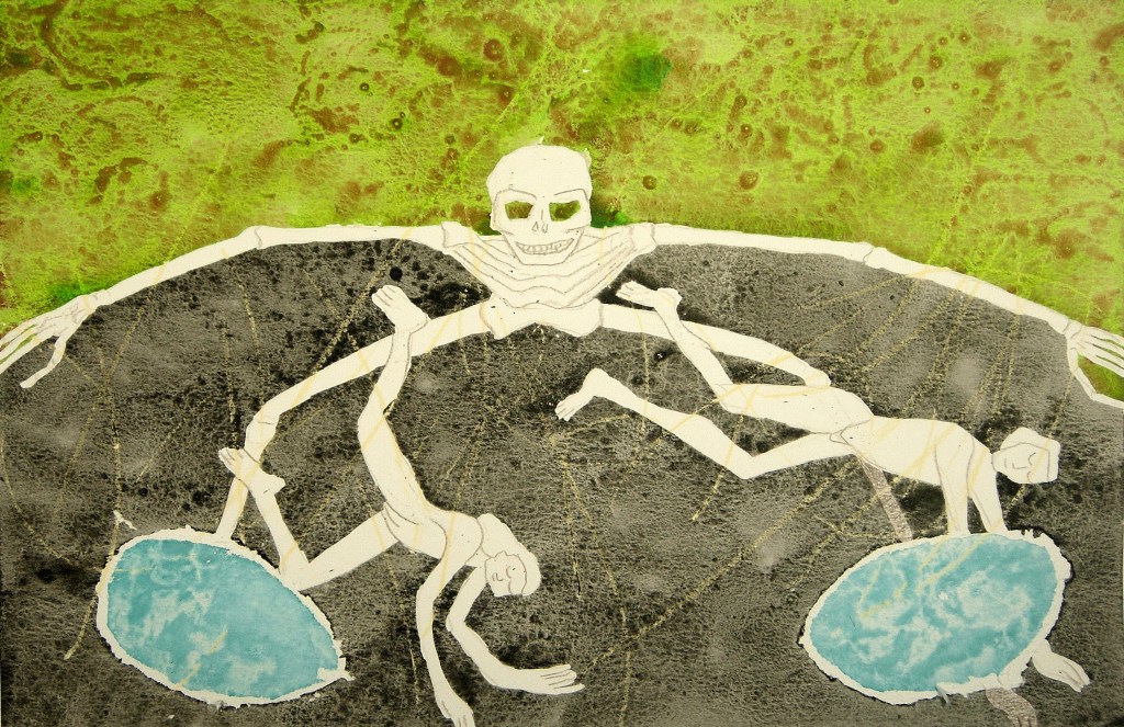 “Ovaires” is the French word for ovaries. When I was a kid, I would somehow hear “Oiseaux Verts”, which translates as “green birds”. O-Verts paintings show the world from the perspective of the Green Birds Ovaries. They offer a version of human history felt through these very subtle and acute sensors.