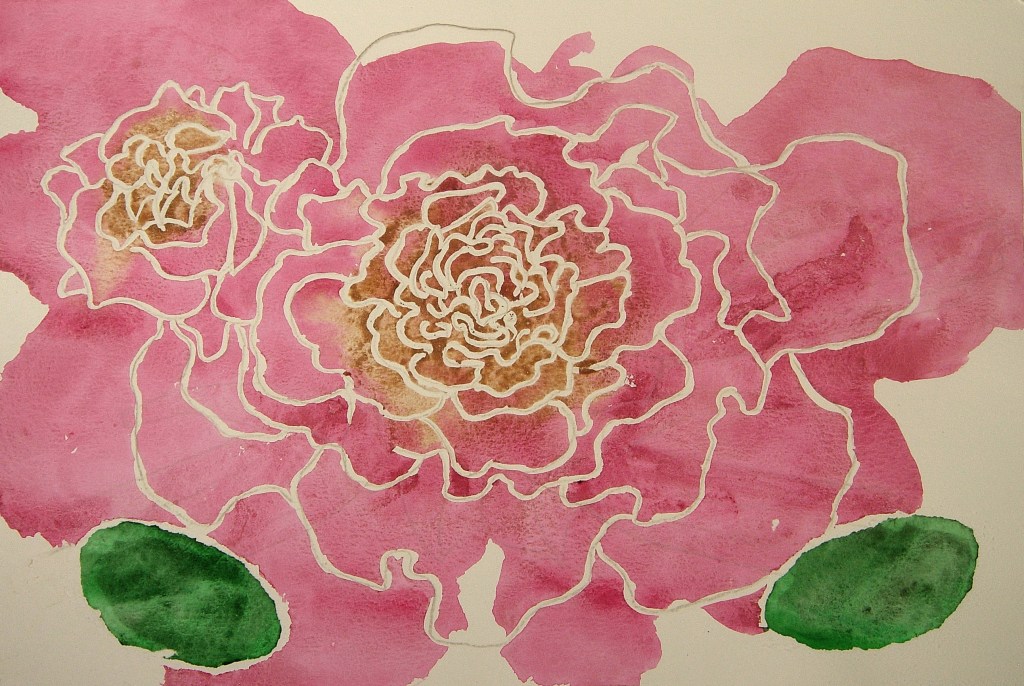 Eve Pix, O-Verts175, rhodonite, zoisite, turquoise, and pencil on paper, 12×18 inches, 2025