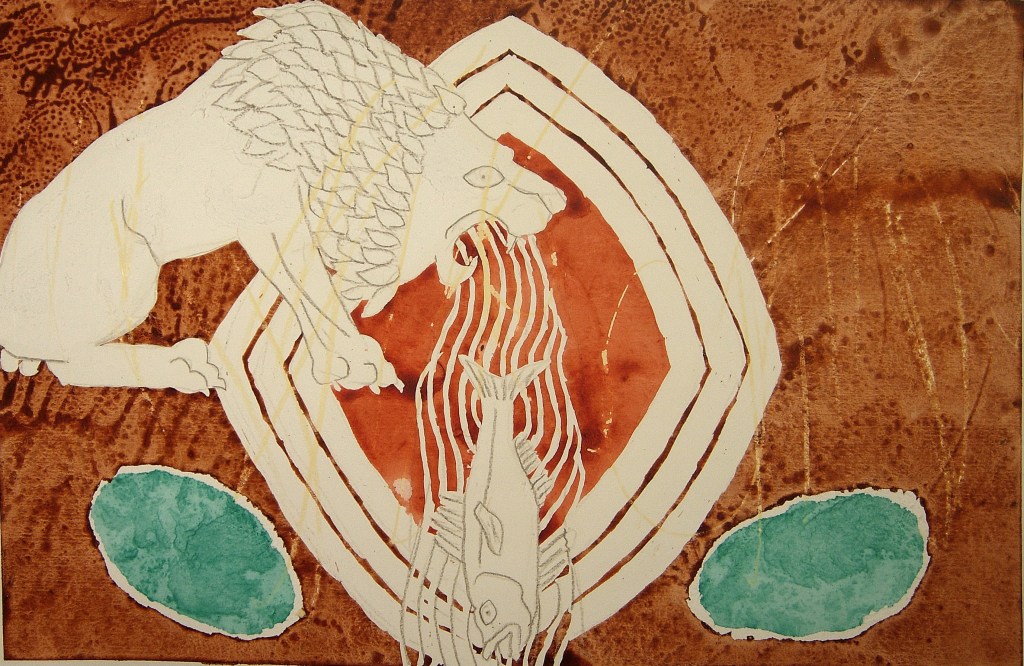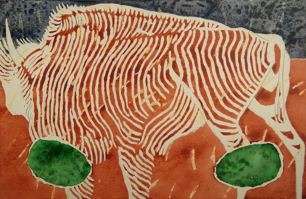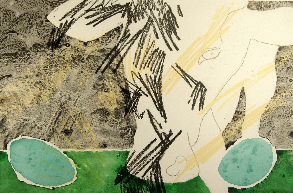 Eve Pix, O-Verts193, bloostone, tiger-eye, serpentine, and pencil on paper, 12×18 inches, 2025