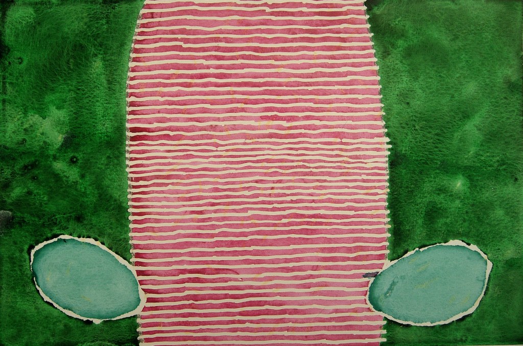 Eve Pix, O-Verts141, turquoise, Russian emerald, and pencil on paper, 12×18 inches, 2025