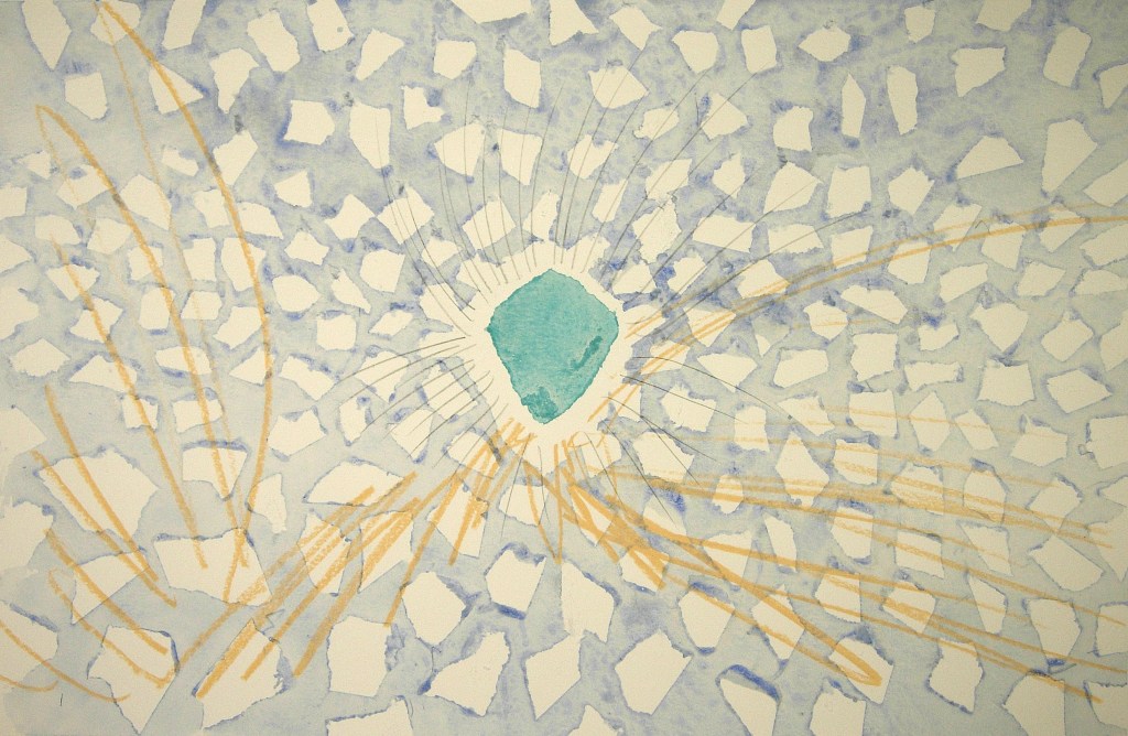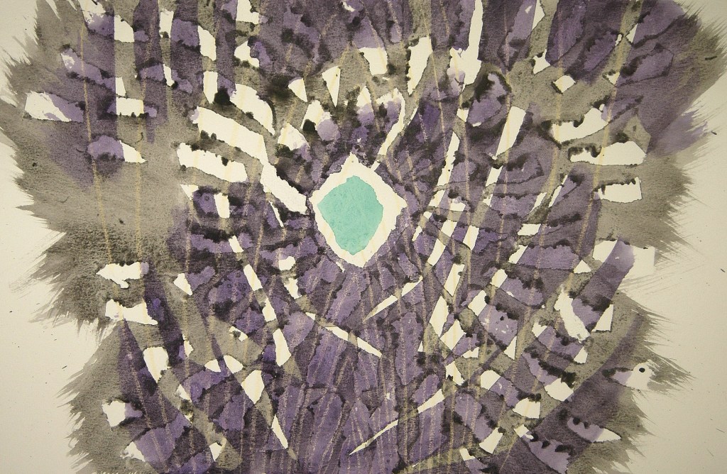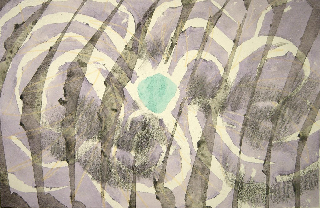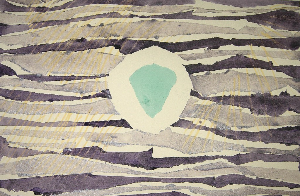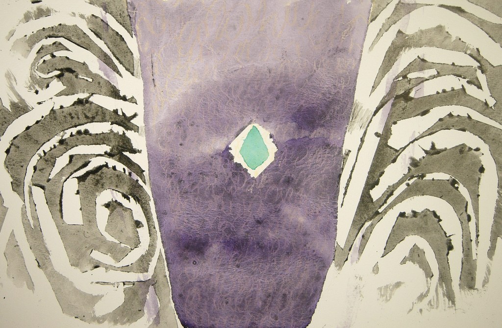 Eve Pix, Tiffany 134, amazonite, amethyst, black tourmaline, and pencil on paper, 12X18 inches, 2024