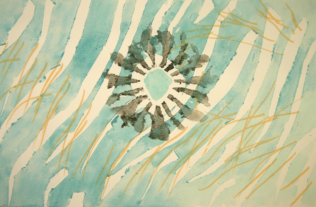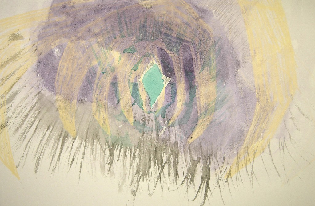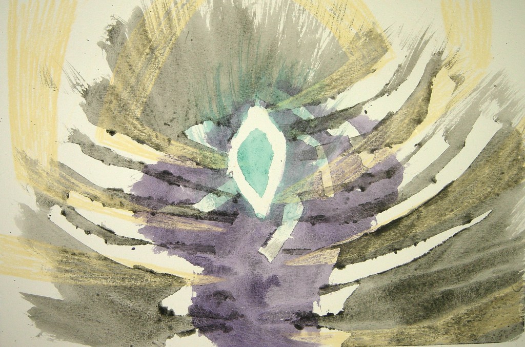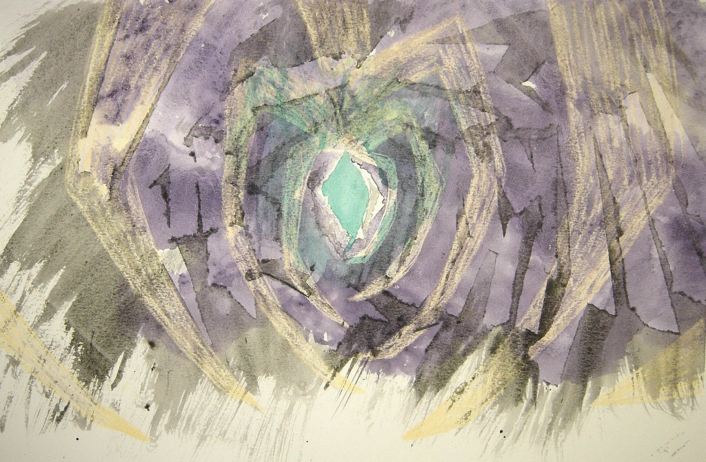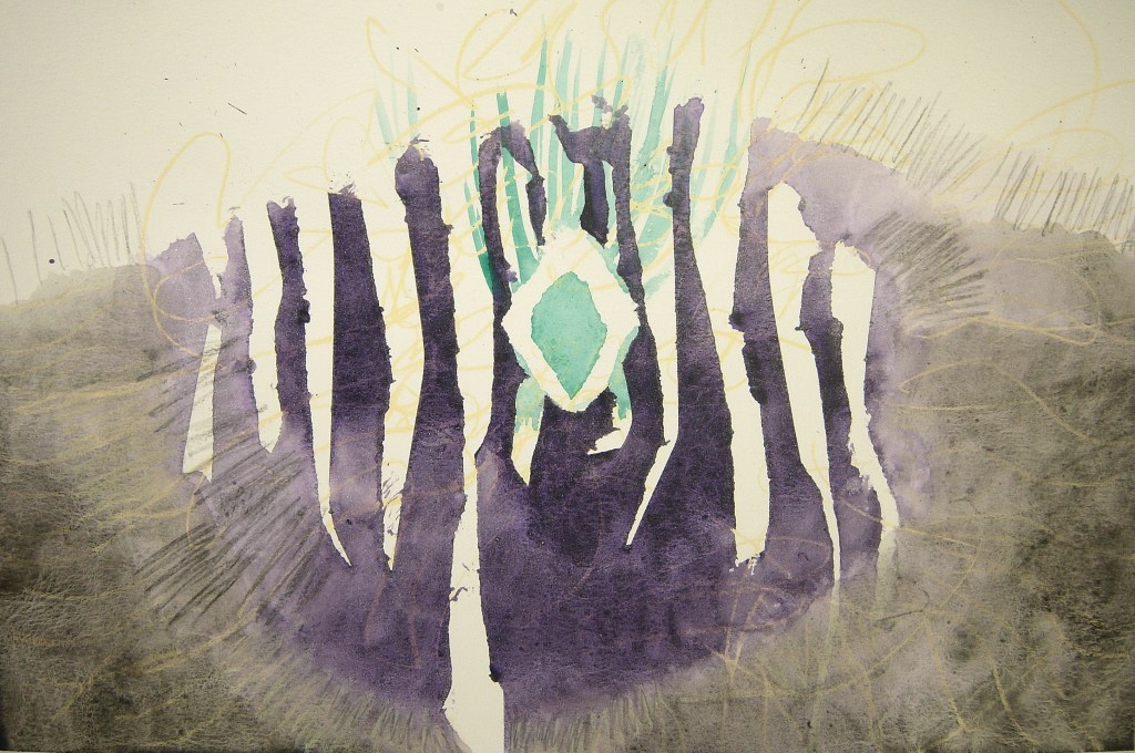 Eve Pix, Tiffany 134, amazonite, amethyst, black tourmaline, and pencil on paper, 12X18 inches, 2024