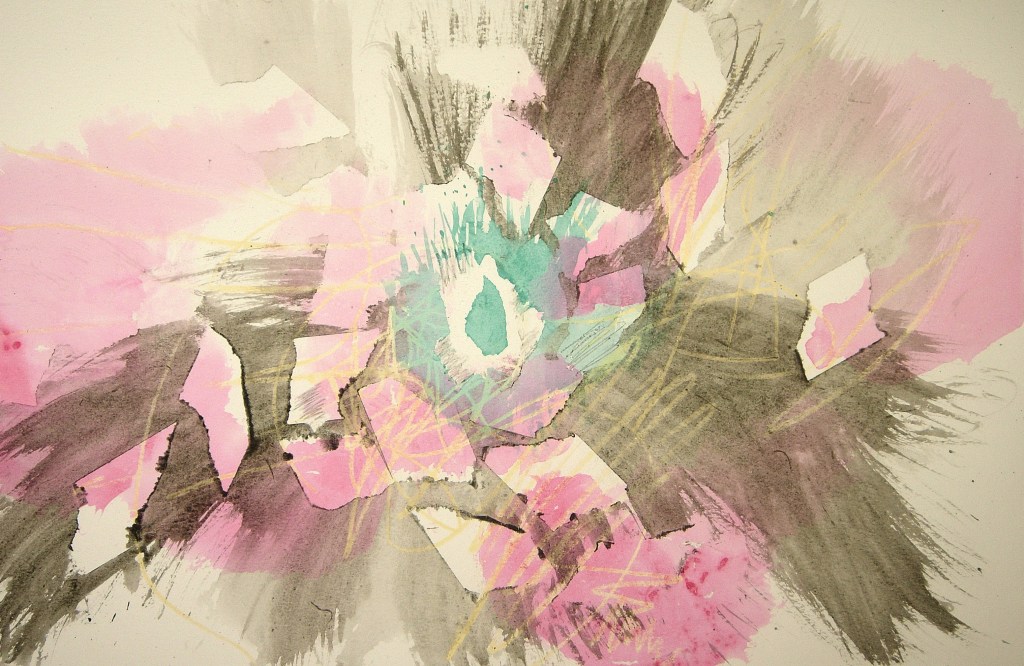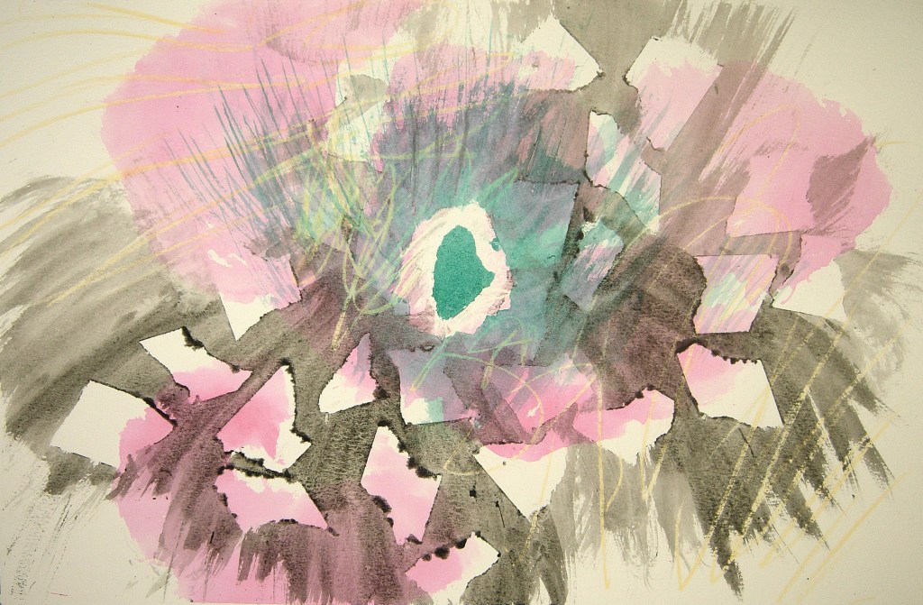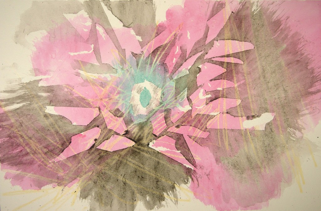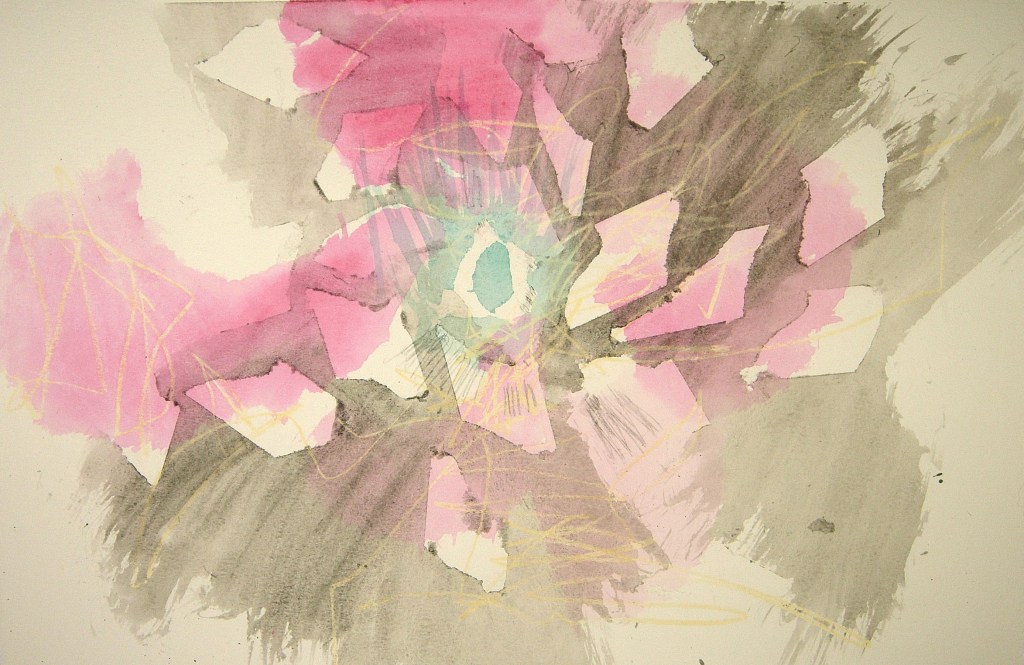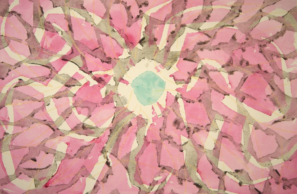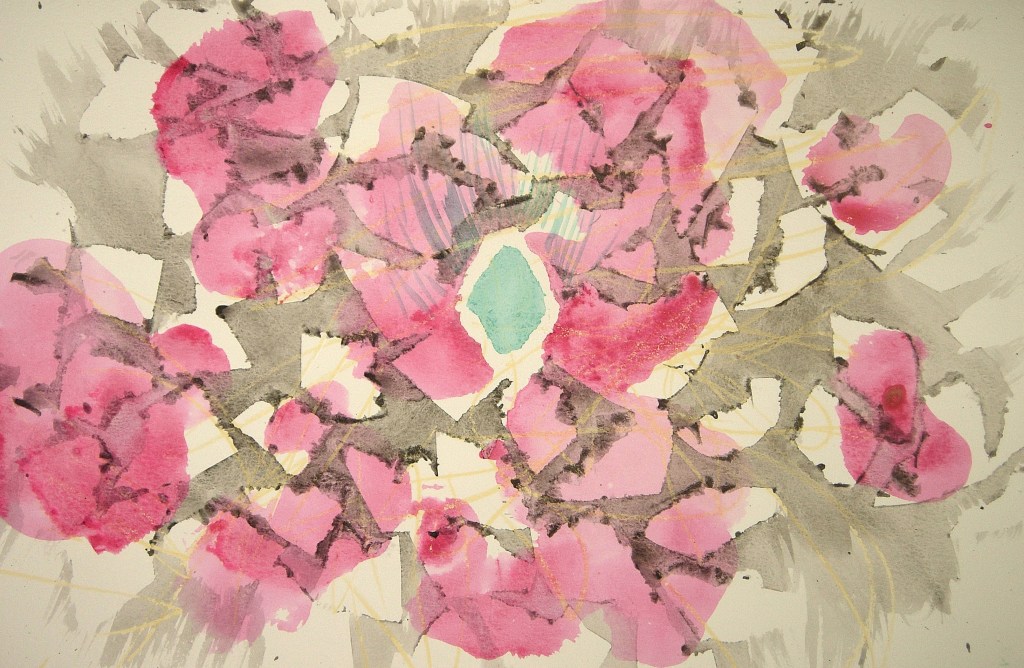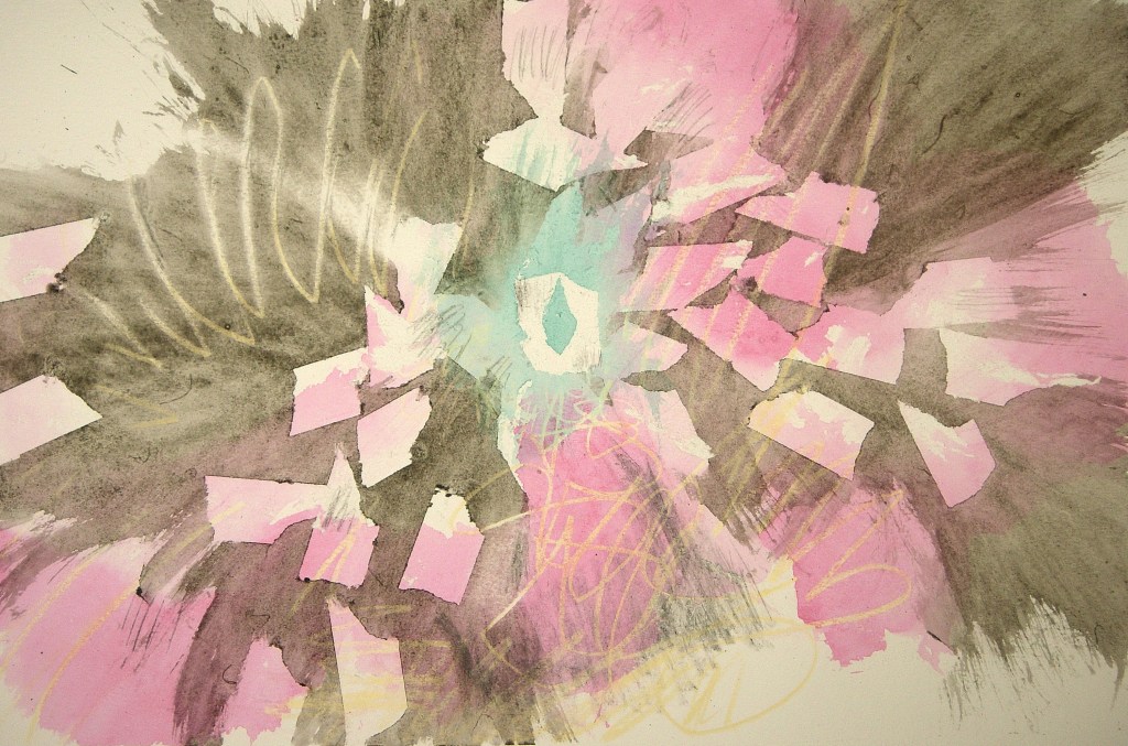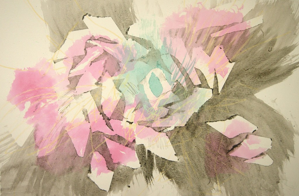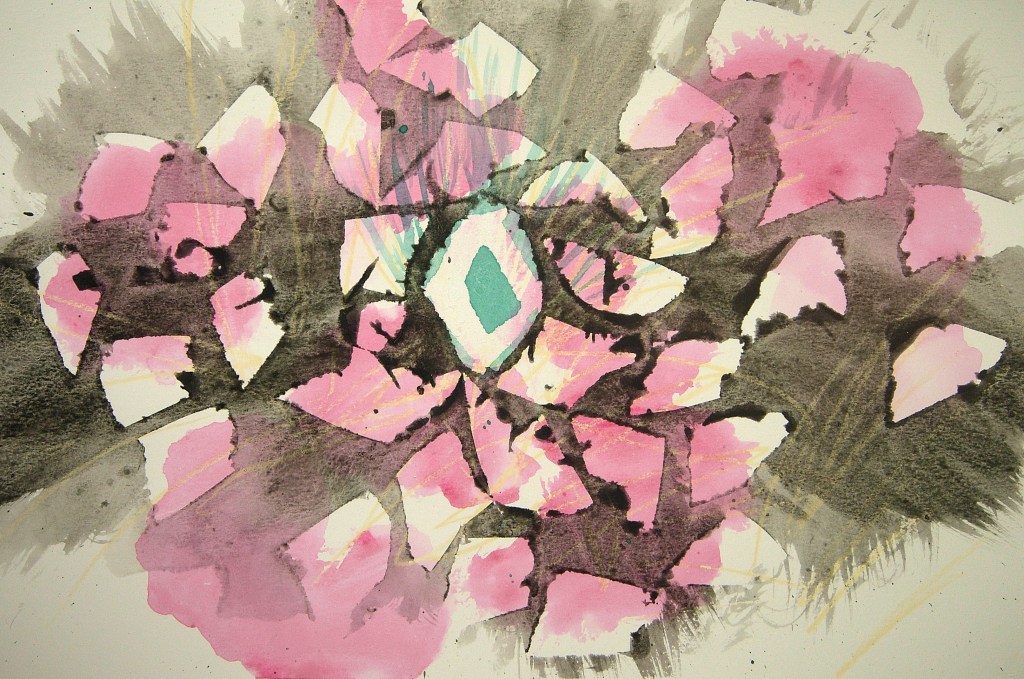 Eve Pix, Tiffany 135, amazonite, rhodonite, black tourmaline, and pencil on paper, 12X18 inches, 2024