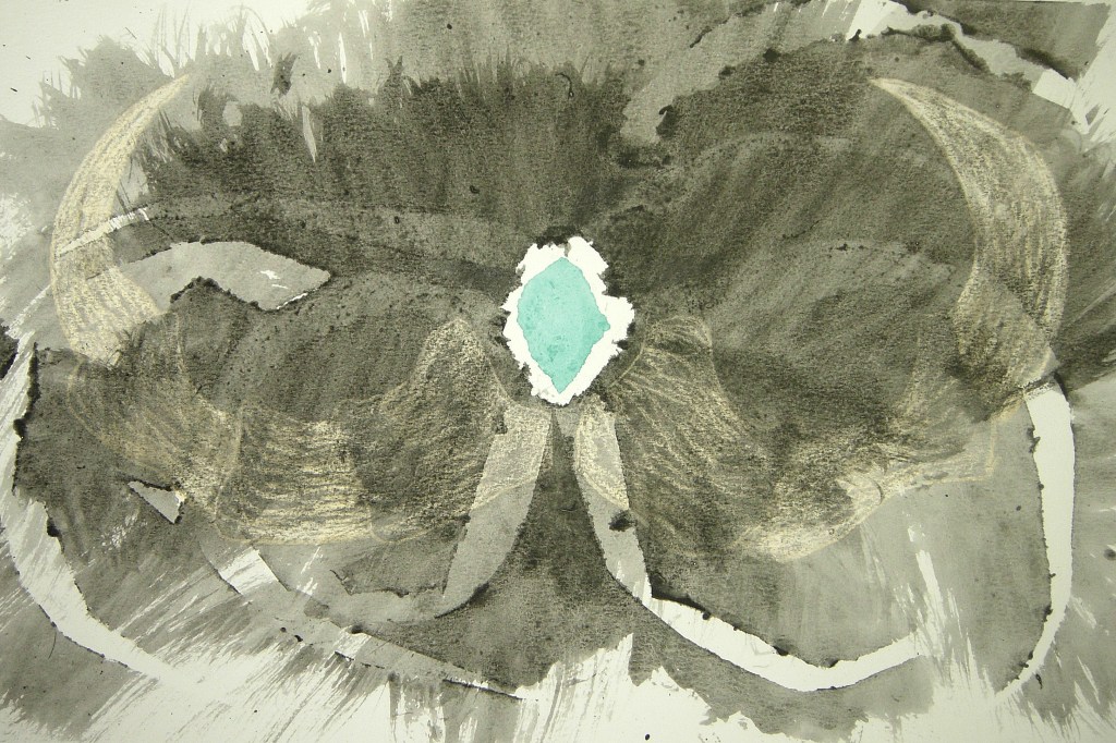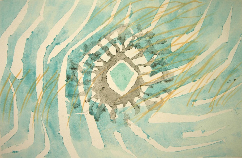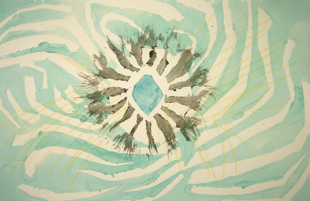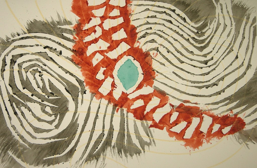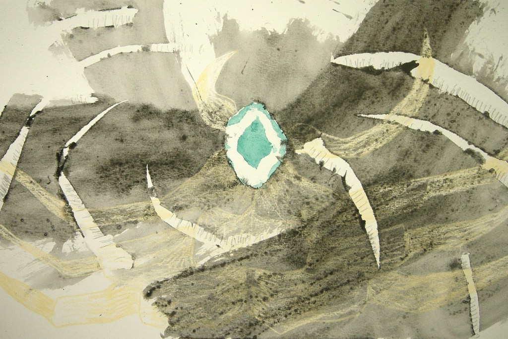 Eve Pix, Tiffany 154, amazonite, turquoise, tiger-eye, black tourmaline, and pencil on paper, 12X18 inches, 2024 (2)