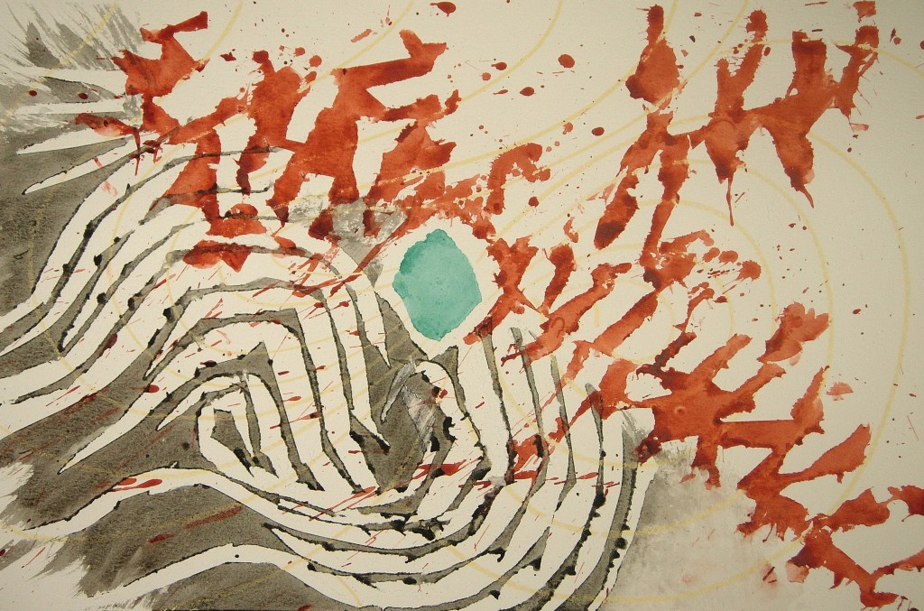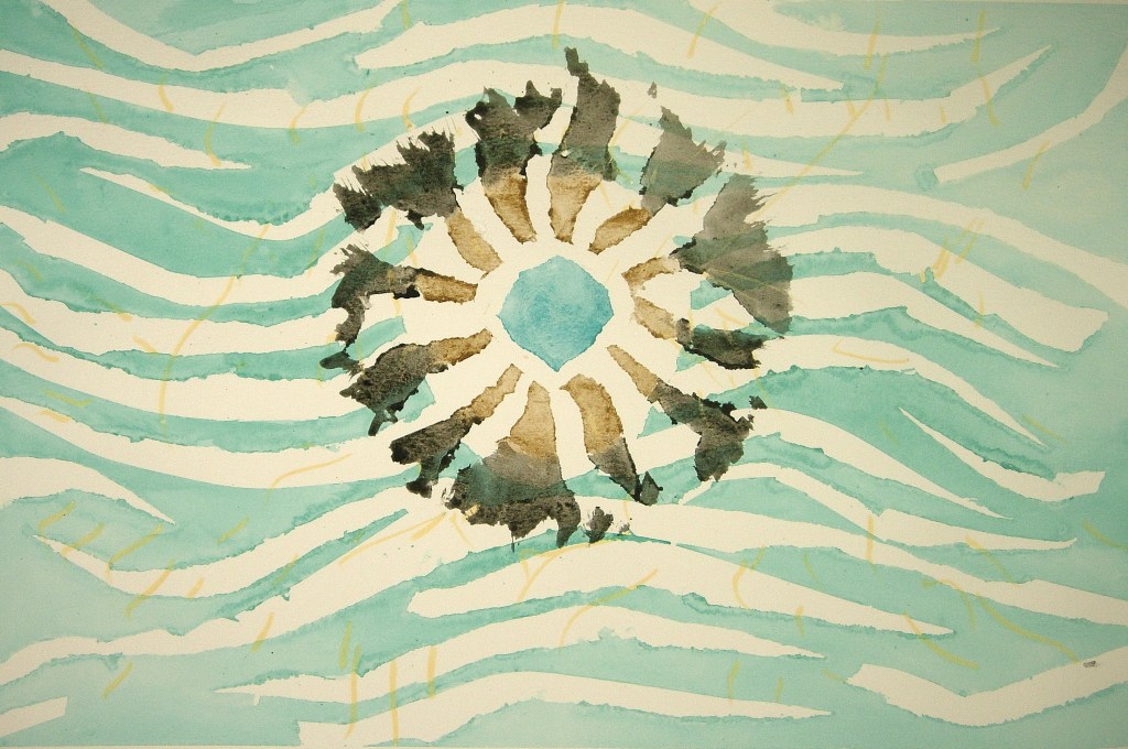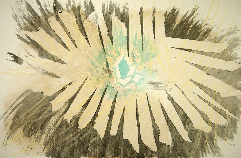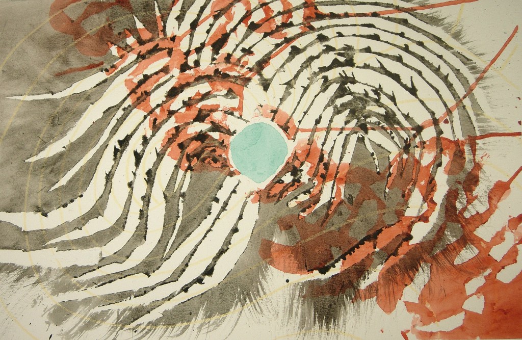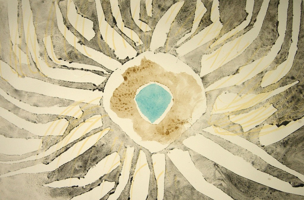Eve Pix, Tiffany 154, amazonite, turquoise, tiger-eye, black tourmaline, and pencil on paper, 12X18 inches, 2024 (2)