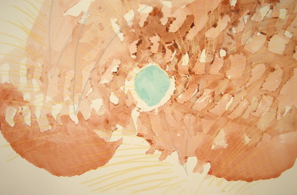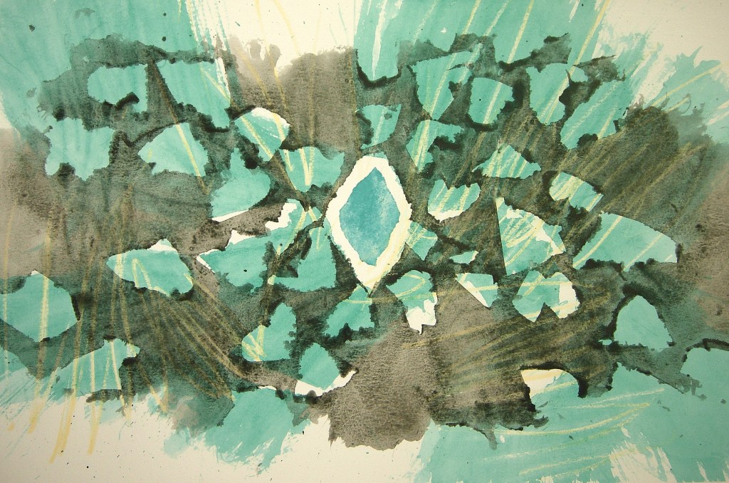 Eve Pix, Tiffany 176, amazonite, pipestone, bauxite, and pencil on paper, 12X18 inches, 2024
