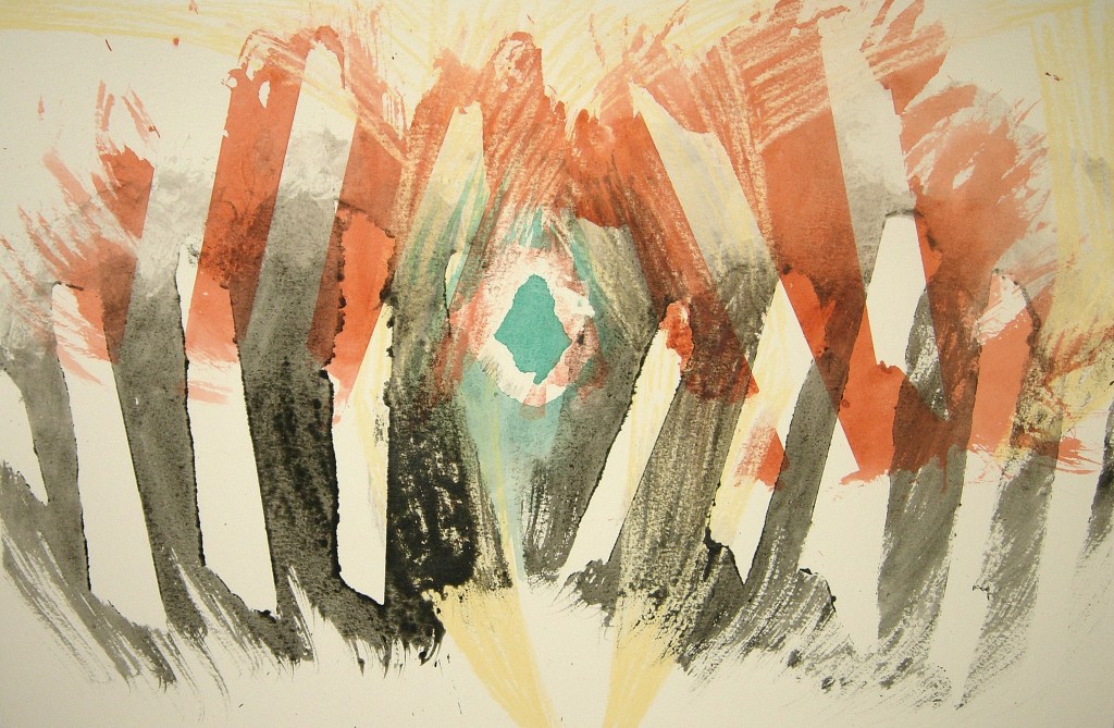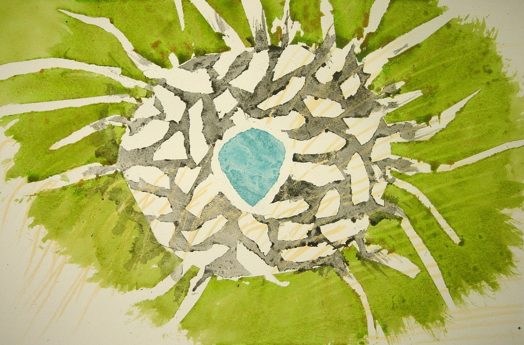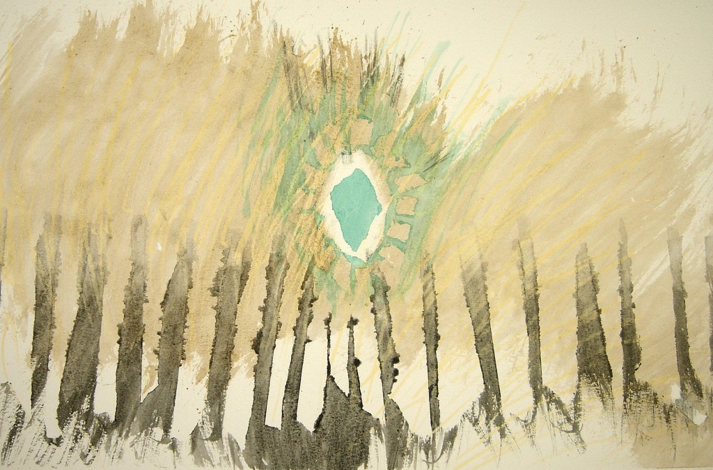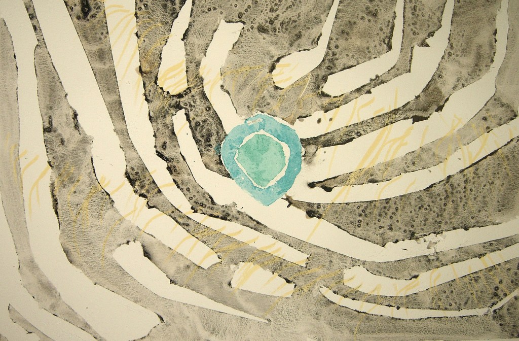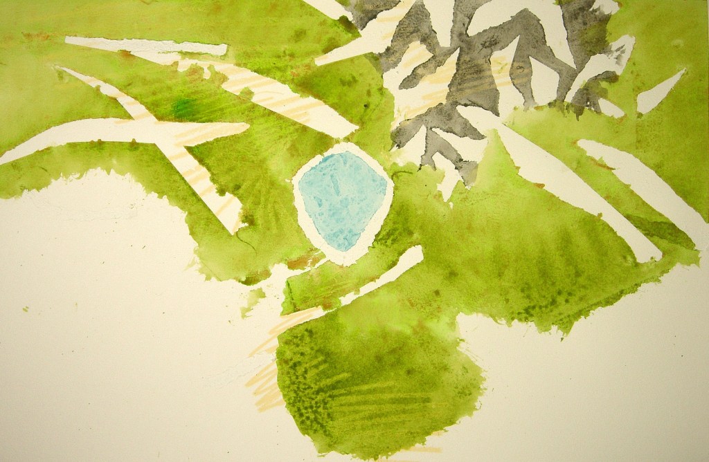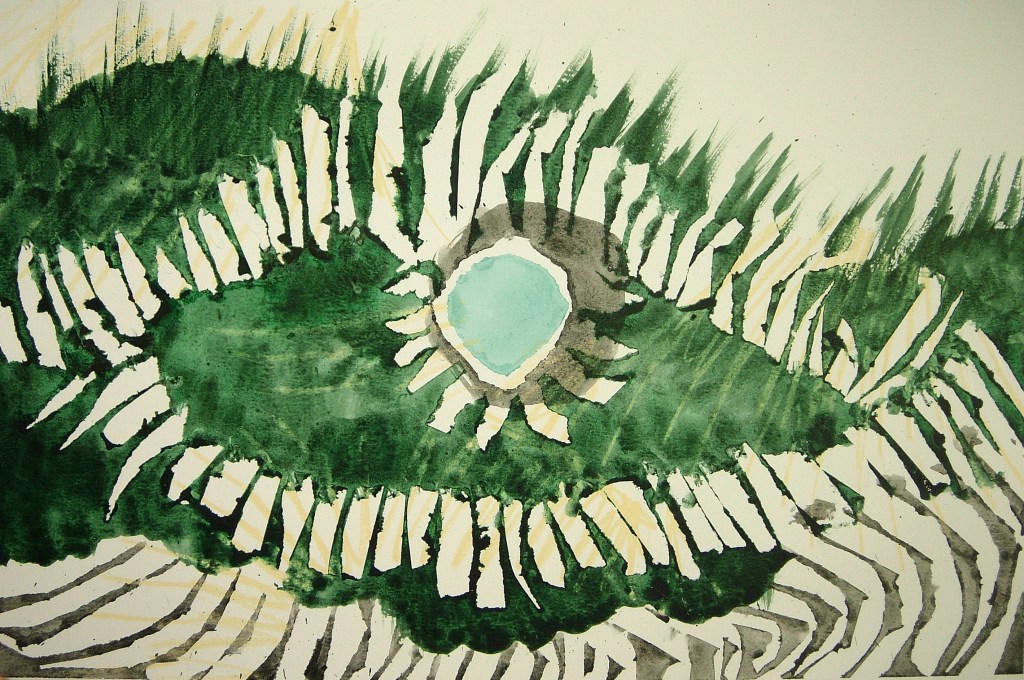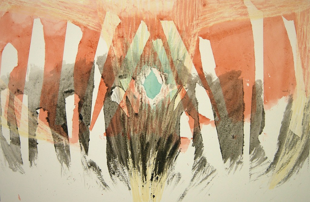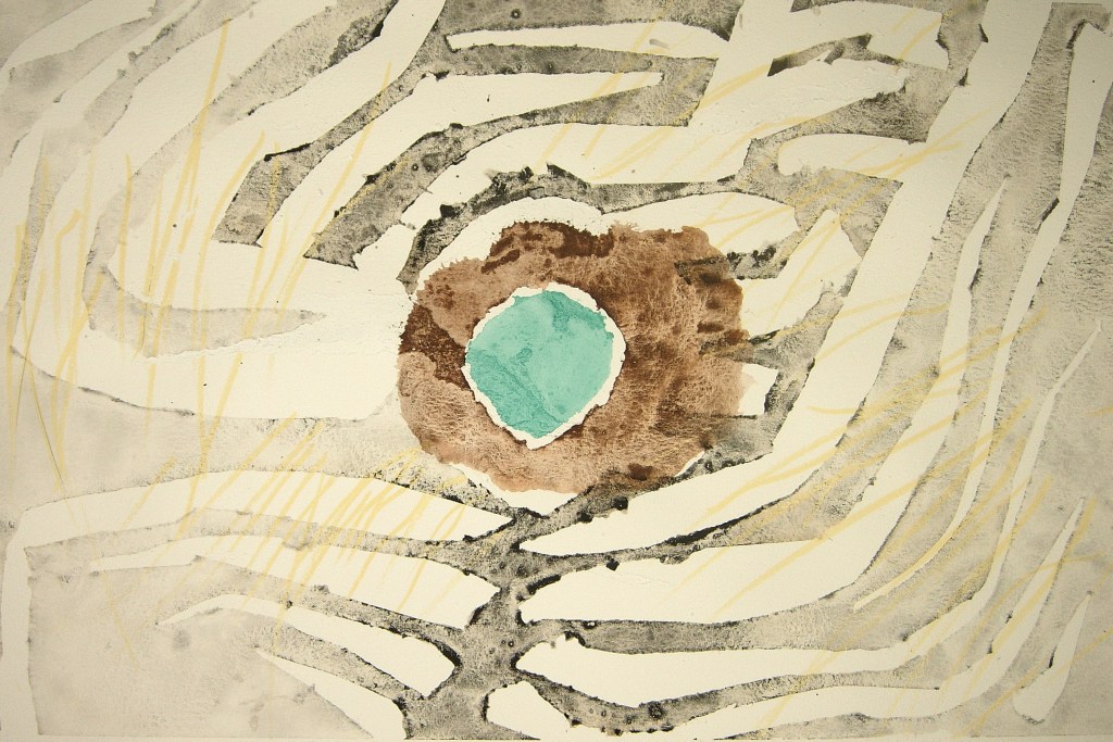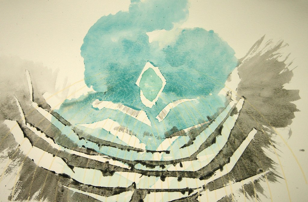 Eve Pix, Tiffany 132, amazonite, pipestone, bauxite, and pencil on paper, 12X18 inches, 2024