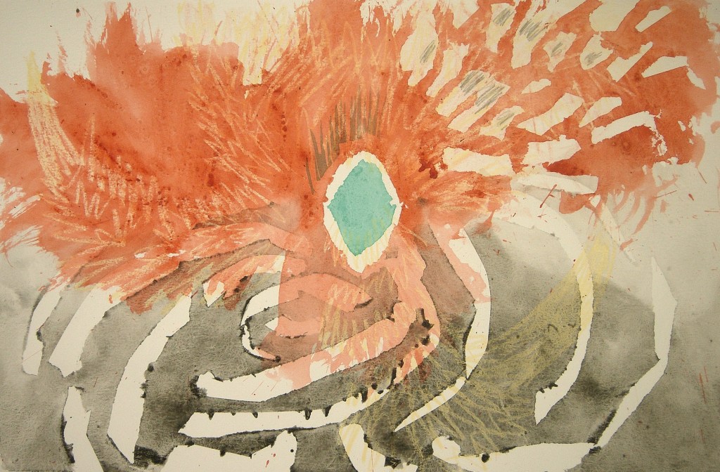 Eve Pix, Tiffany 130, amazonite, pipestone, bauxite, and pencil on paper, 12X18 inches, 2024