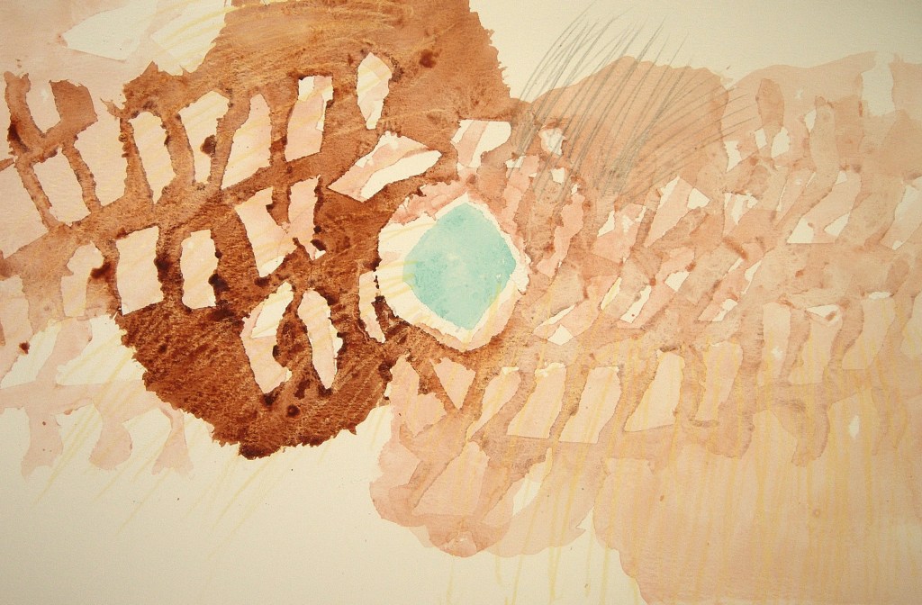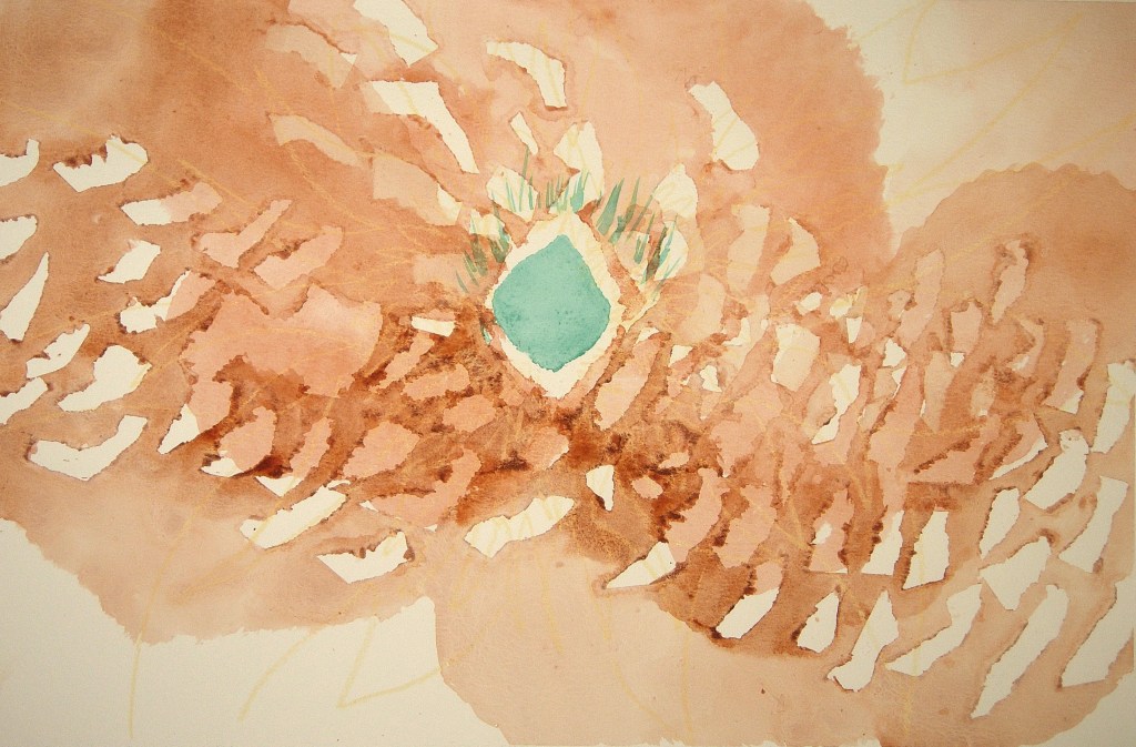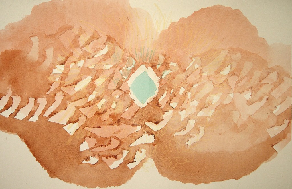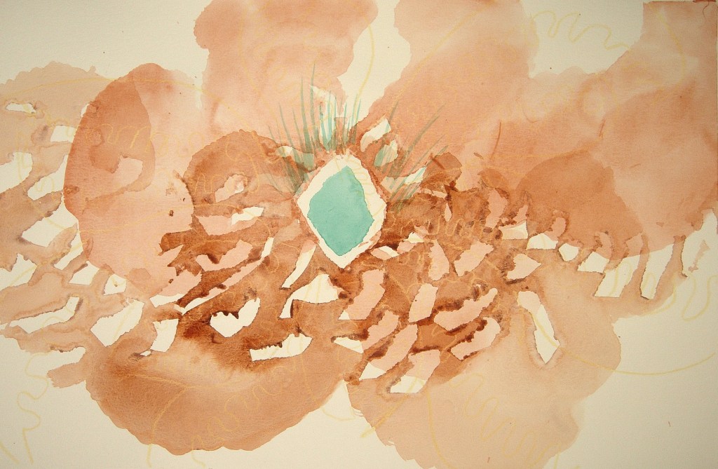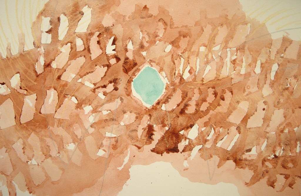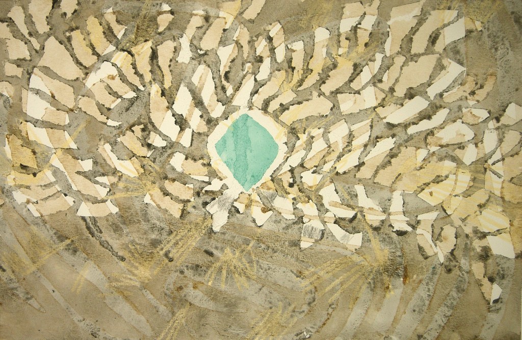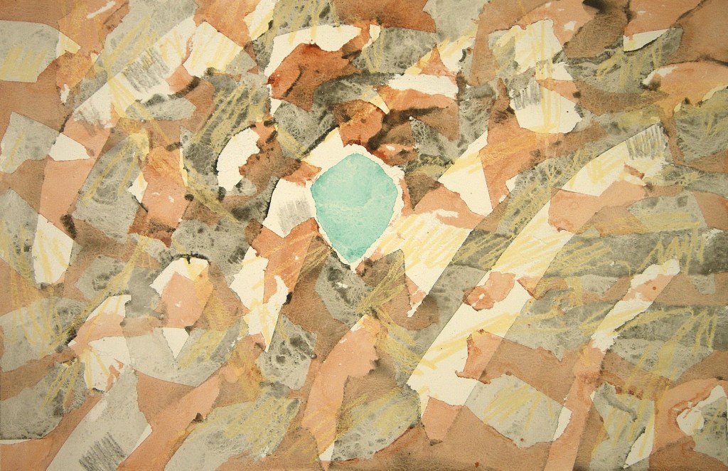 Eve Pix, Tiffany 131, amazonite, pipestone, bauxite, and pencil on paper, 12X18 inches, 2024