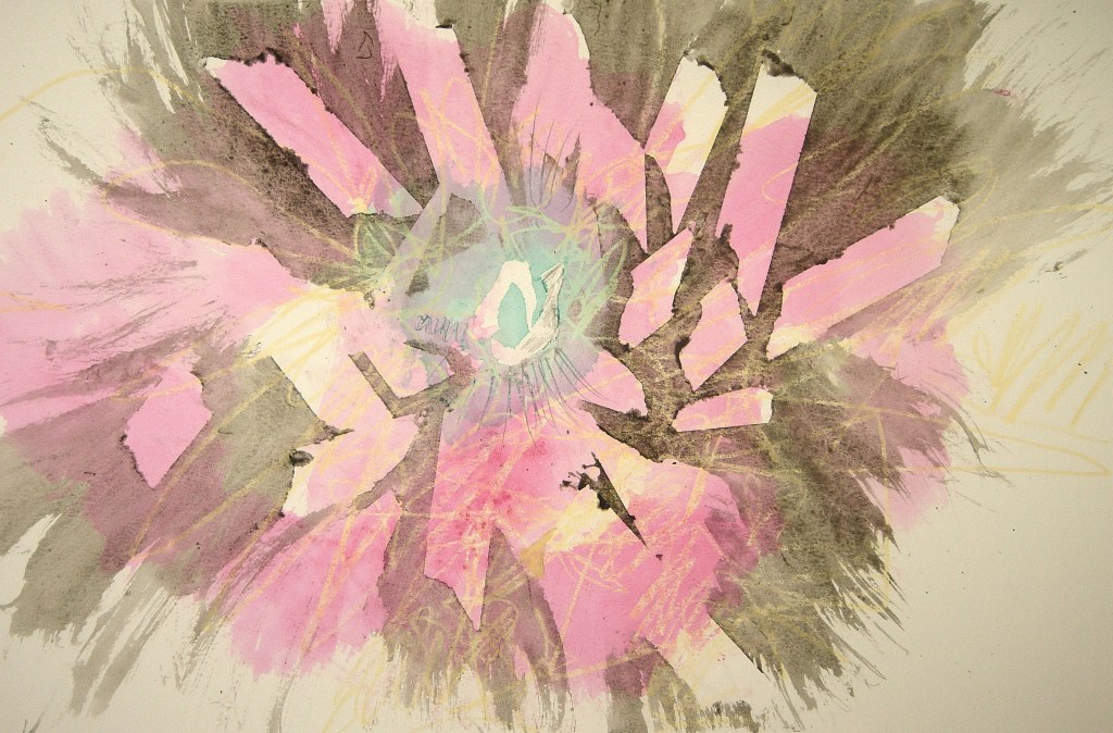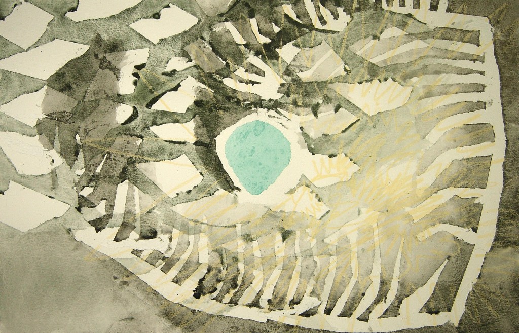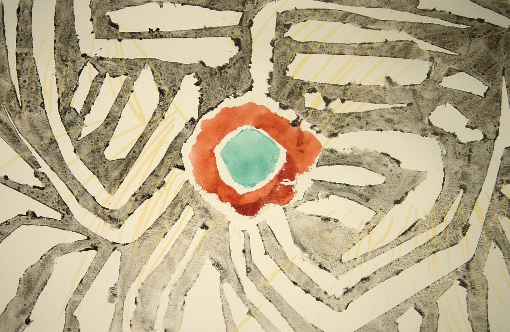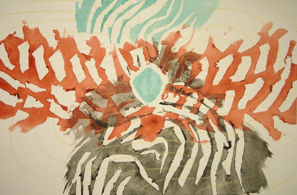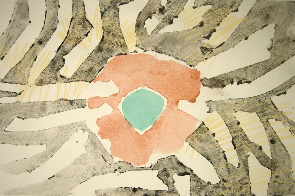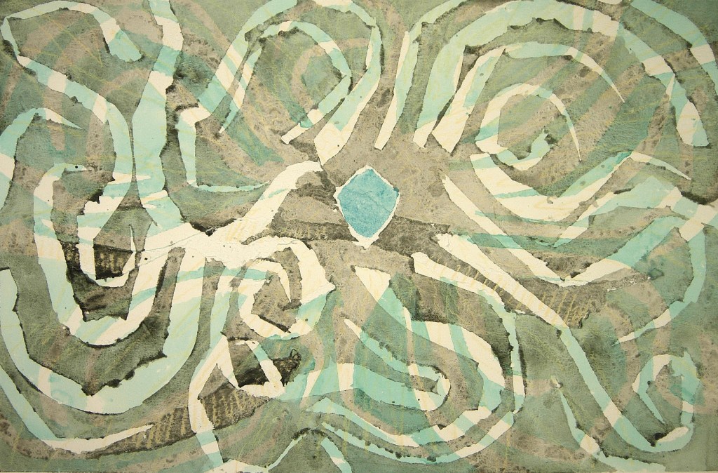 Eve Pix, Tiffany 131, amazonite, pipestone, bauxite, and pencil on paper, 12X18 inches, 2024