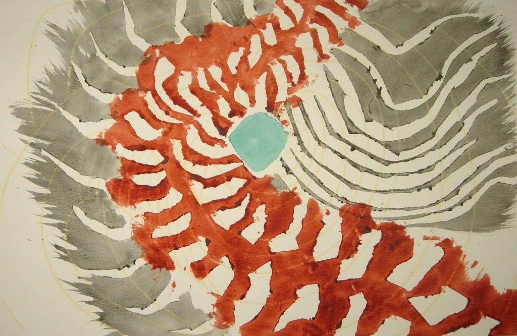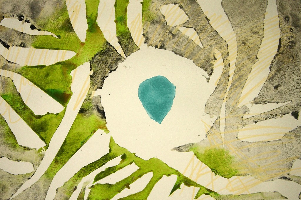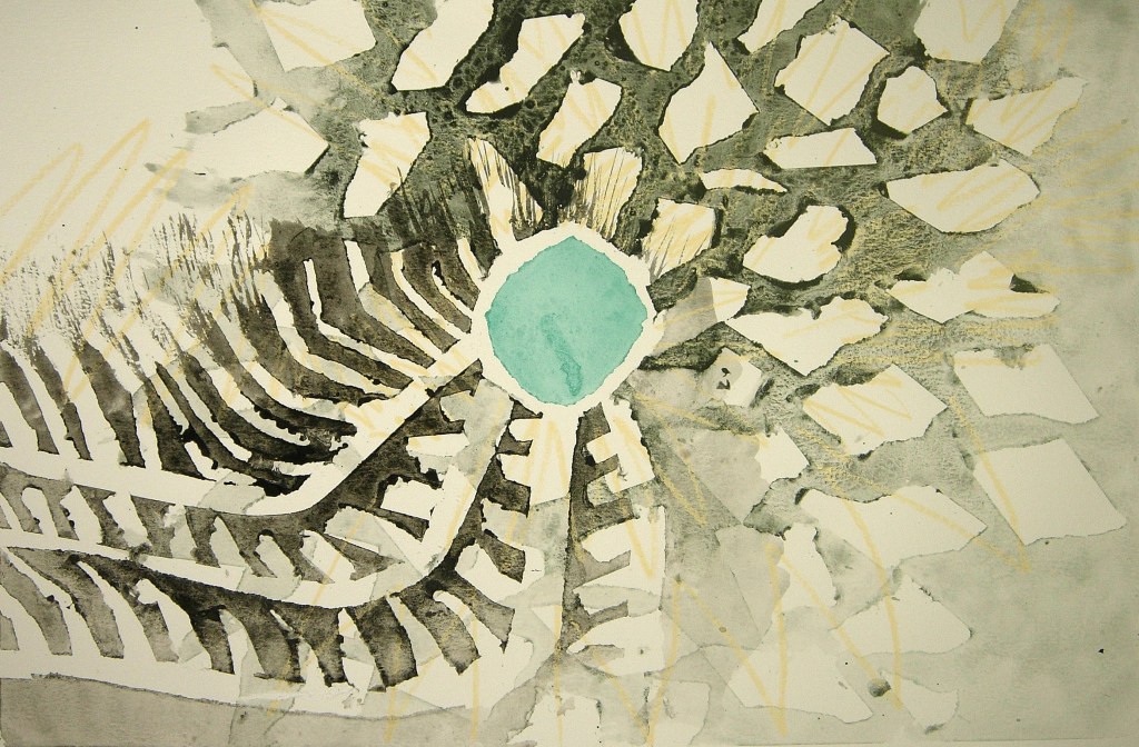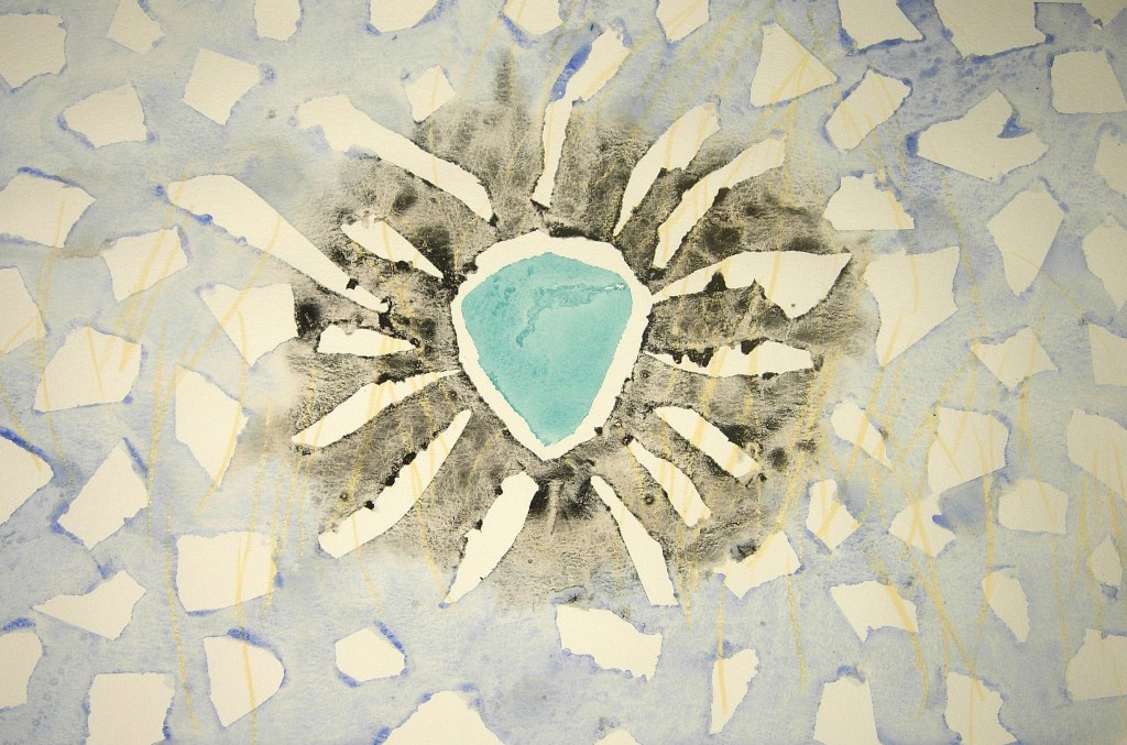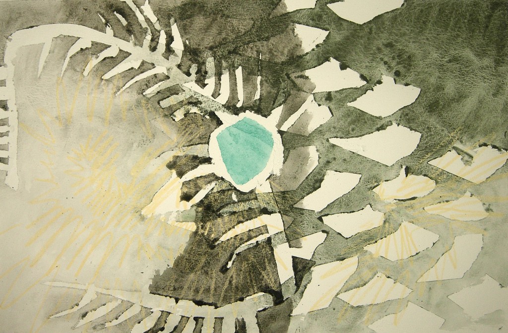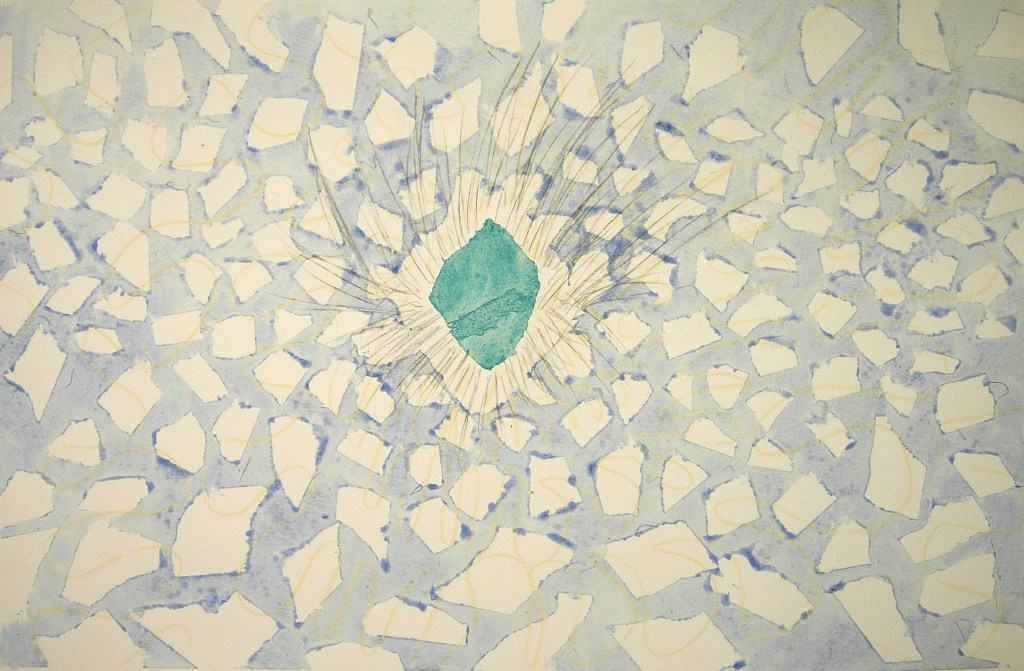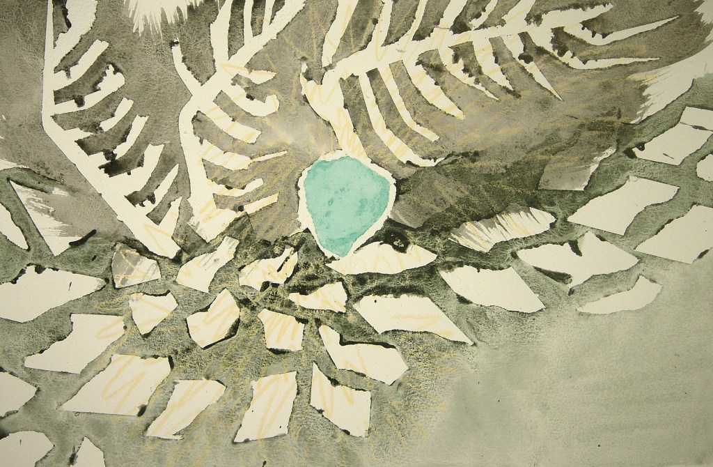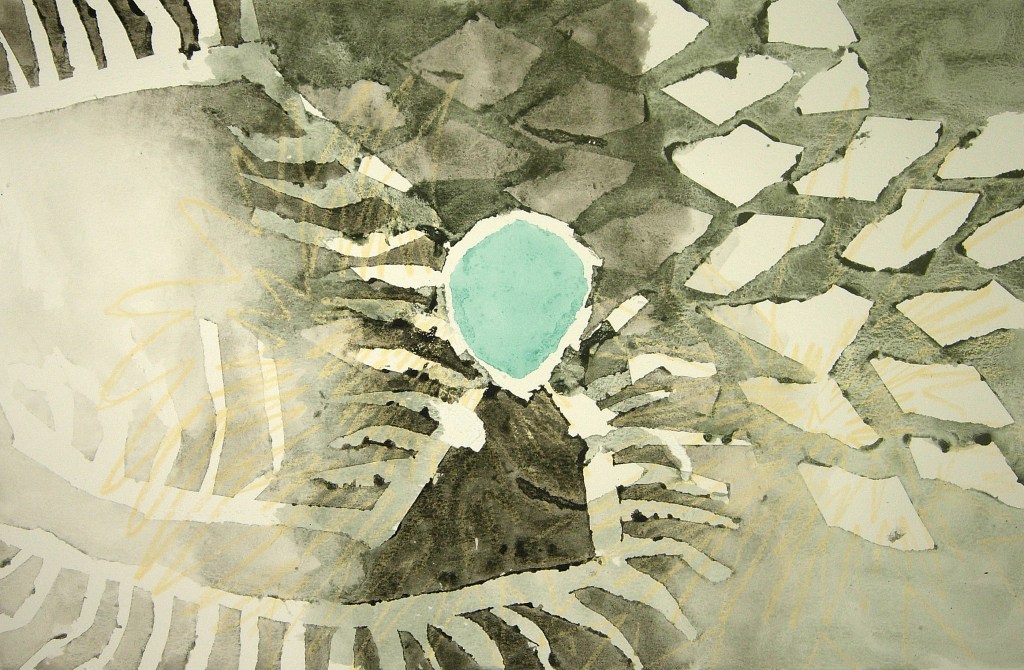 Eve Pix, Tiffany 175, amazonite, pipestone, bauxite, and pencil on paper, 12X18 inches, 2024