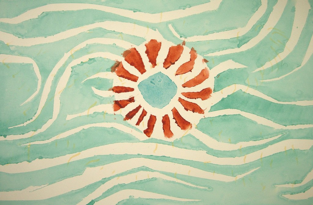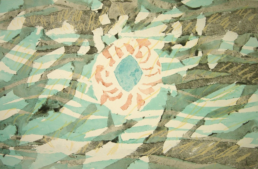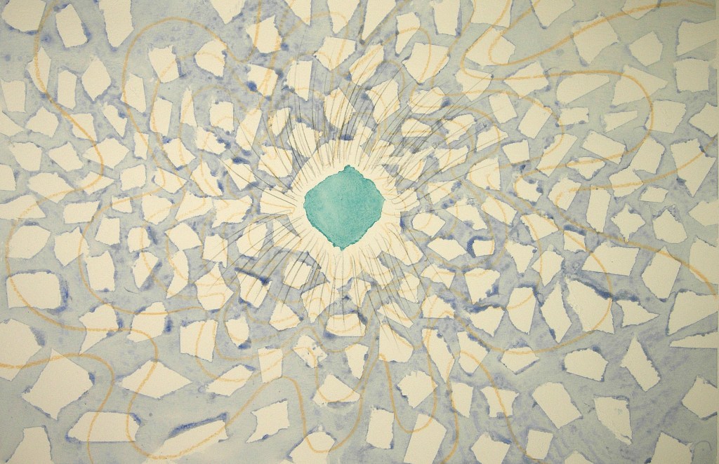 Eve Pix, Tiffany 163, amazonite, turquoise, garnet, and pencil on paper, 12X18 inches, 2024