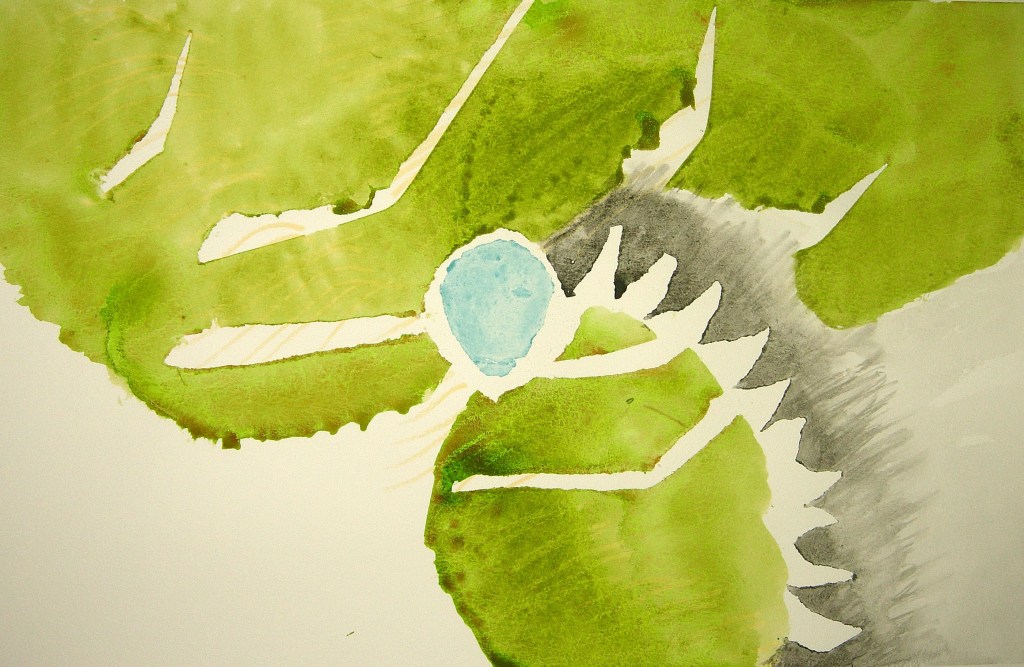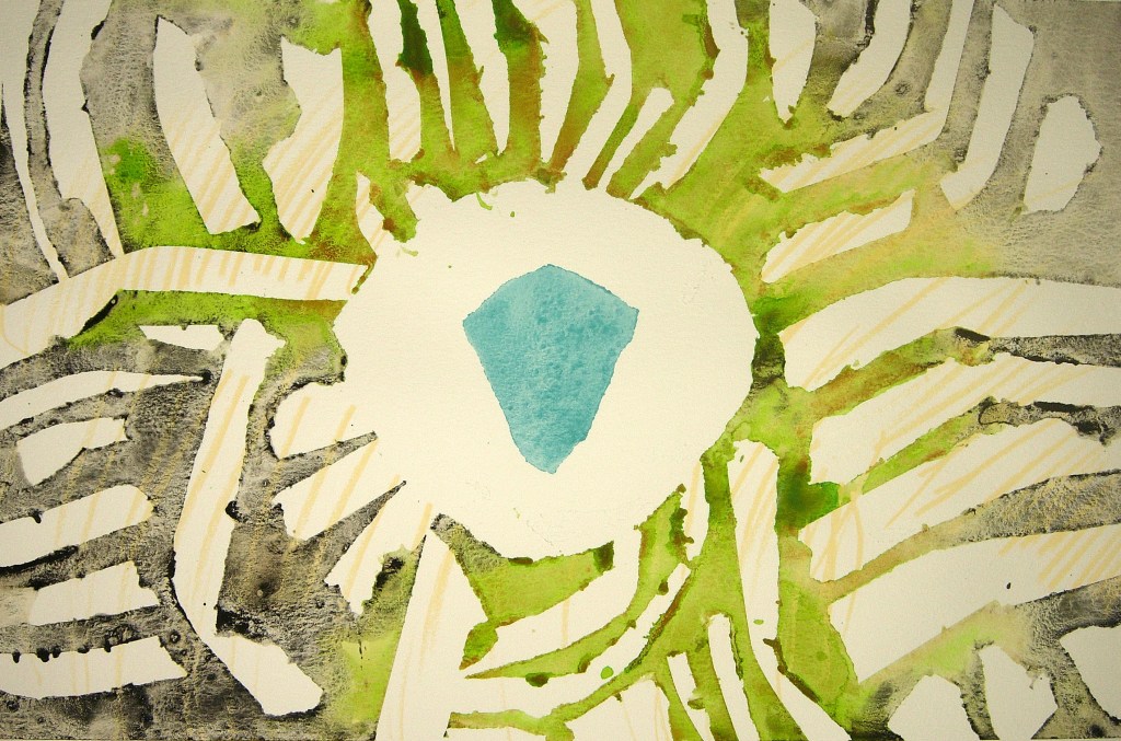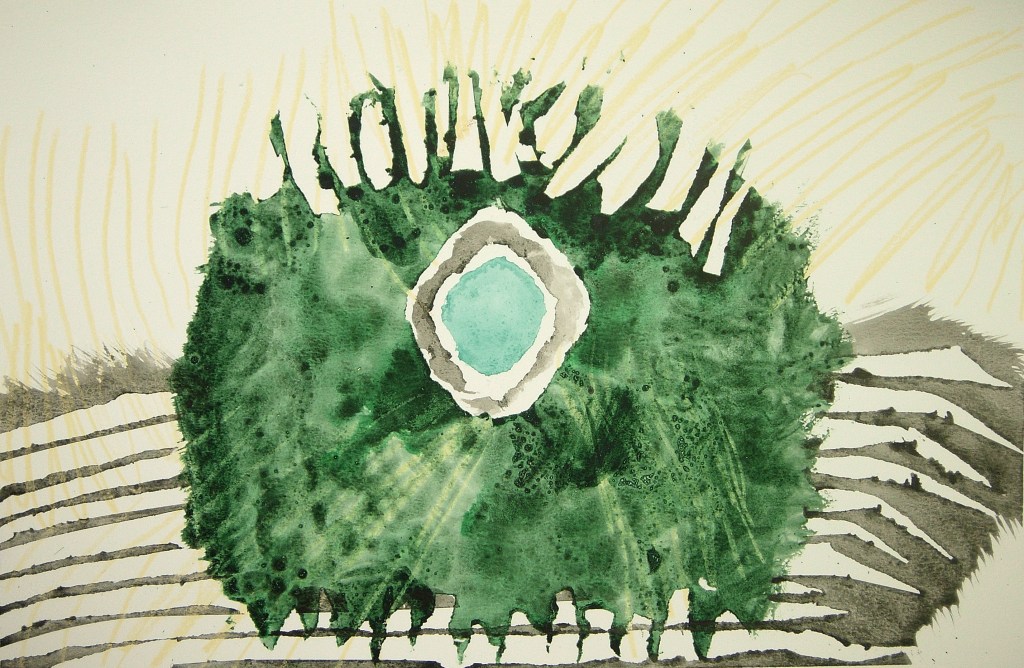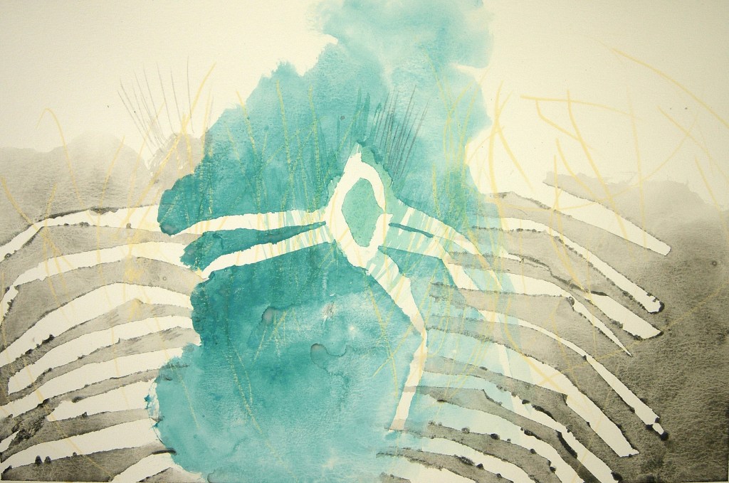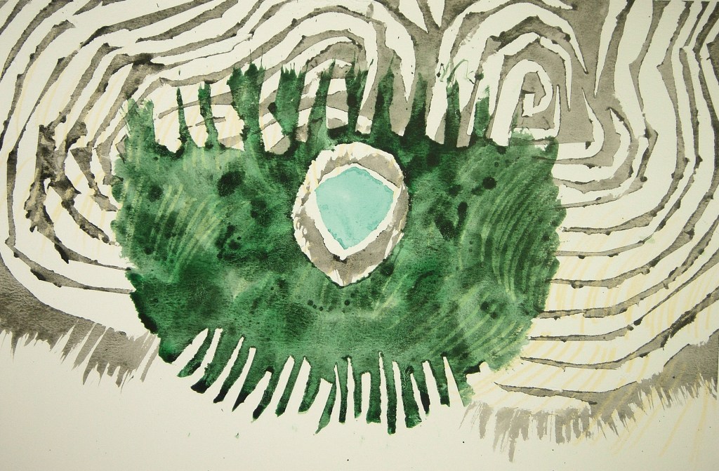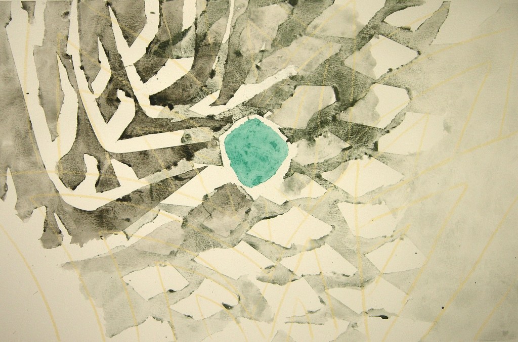 Eve Pix, Tiffany 209, amazonite, zoisite, black tourmaline, and pencil on paper, 12X18 inches, 2024