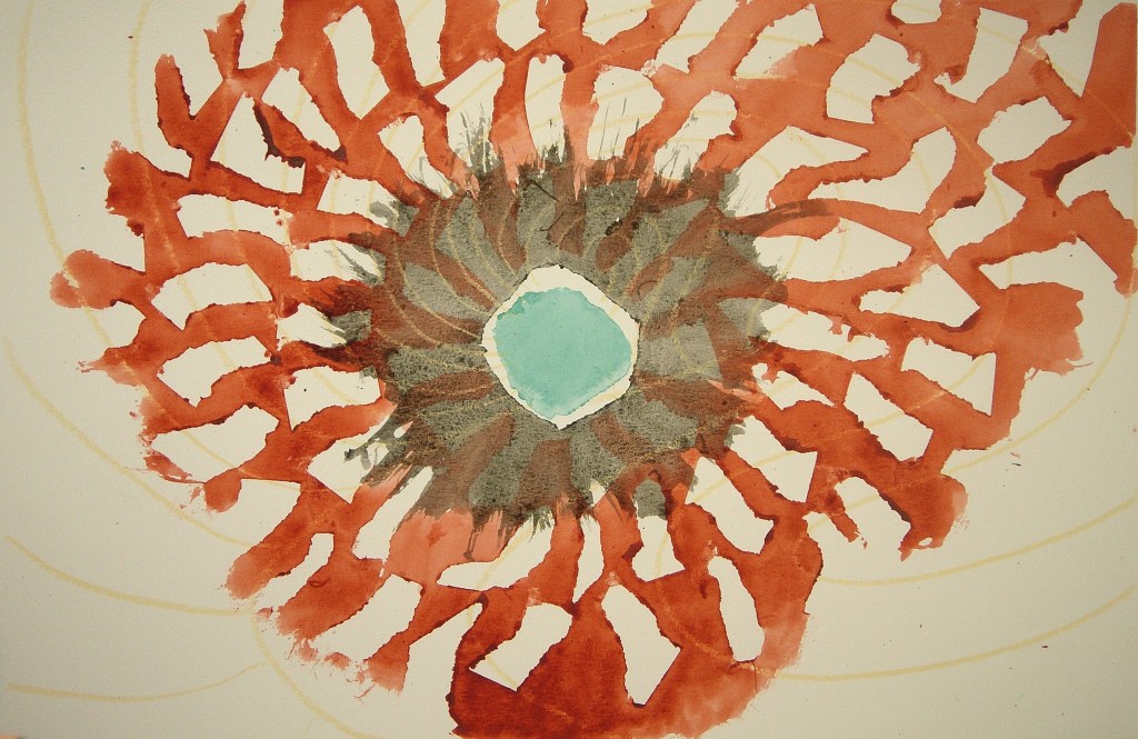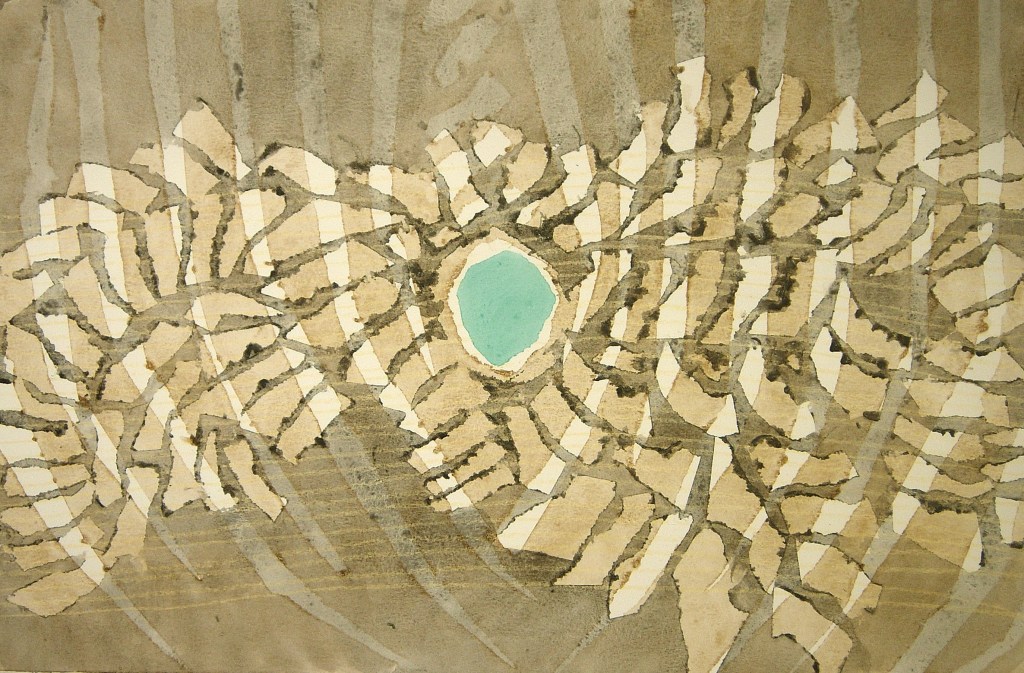 Eve Pix, Tiffany 177A, amazonite, pipestone, bauxite, and pencil on paper, 12X18 inches, 2024