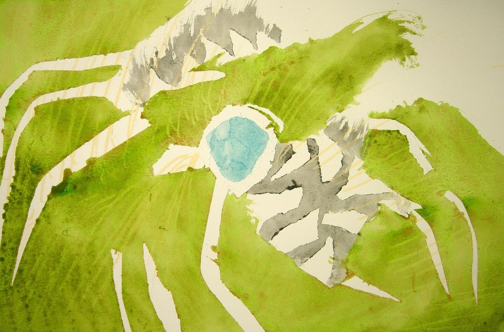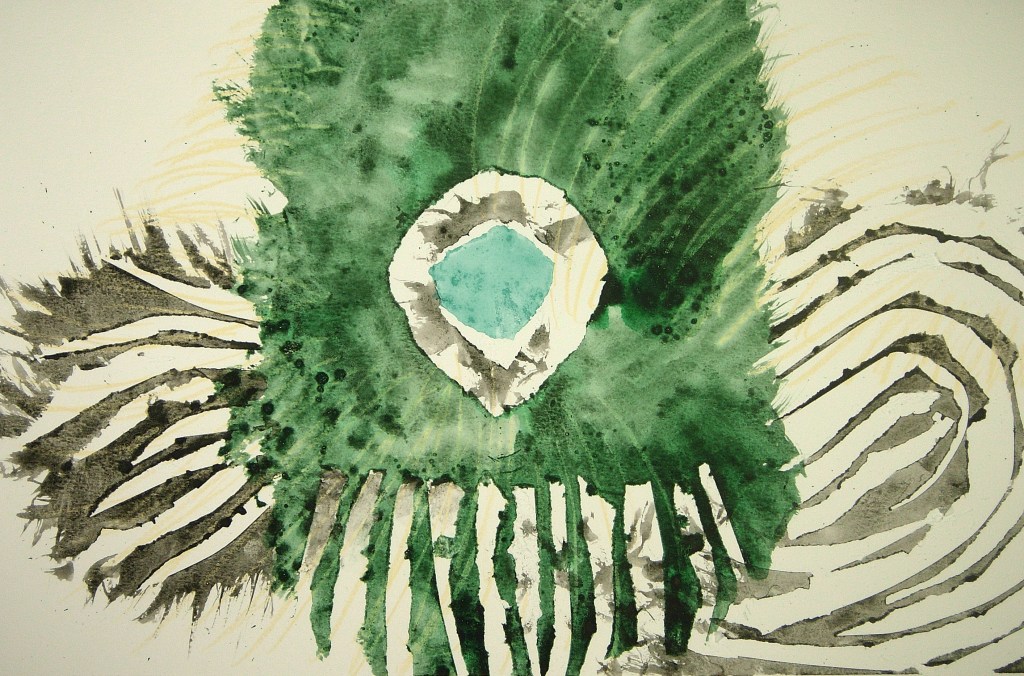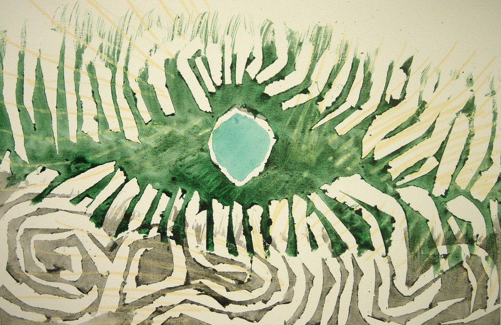 Eve Pix, Tiffany 171, amazonite, jade, black tourmaline, and pencil on paper, 12X18 inches, 2024